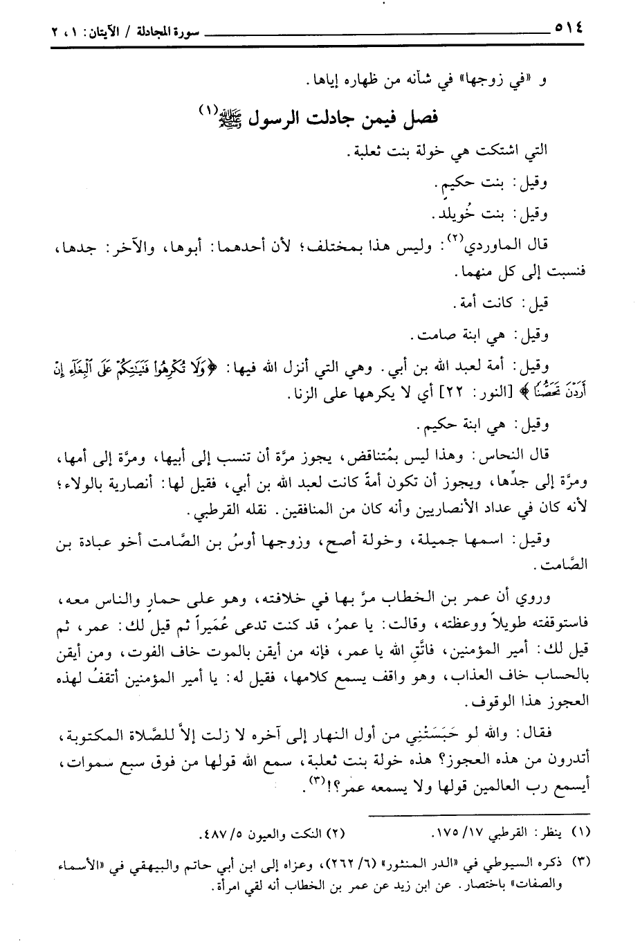 فصل فيمن جادلت الرسول صَلَّى اللَّهُ عَلَيْهِ وَسَلَّم َ