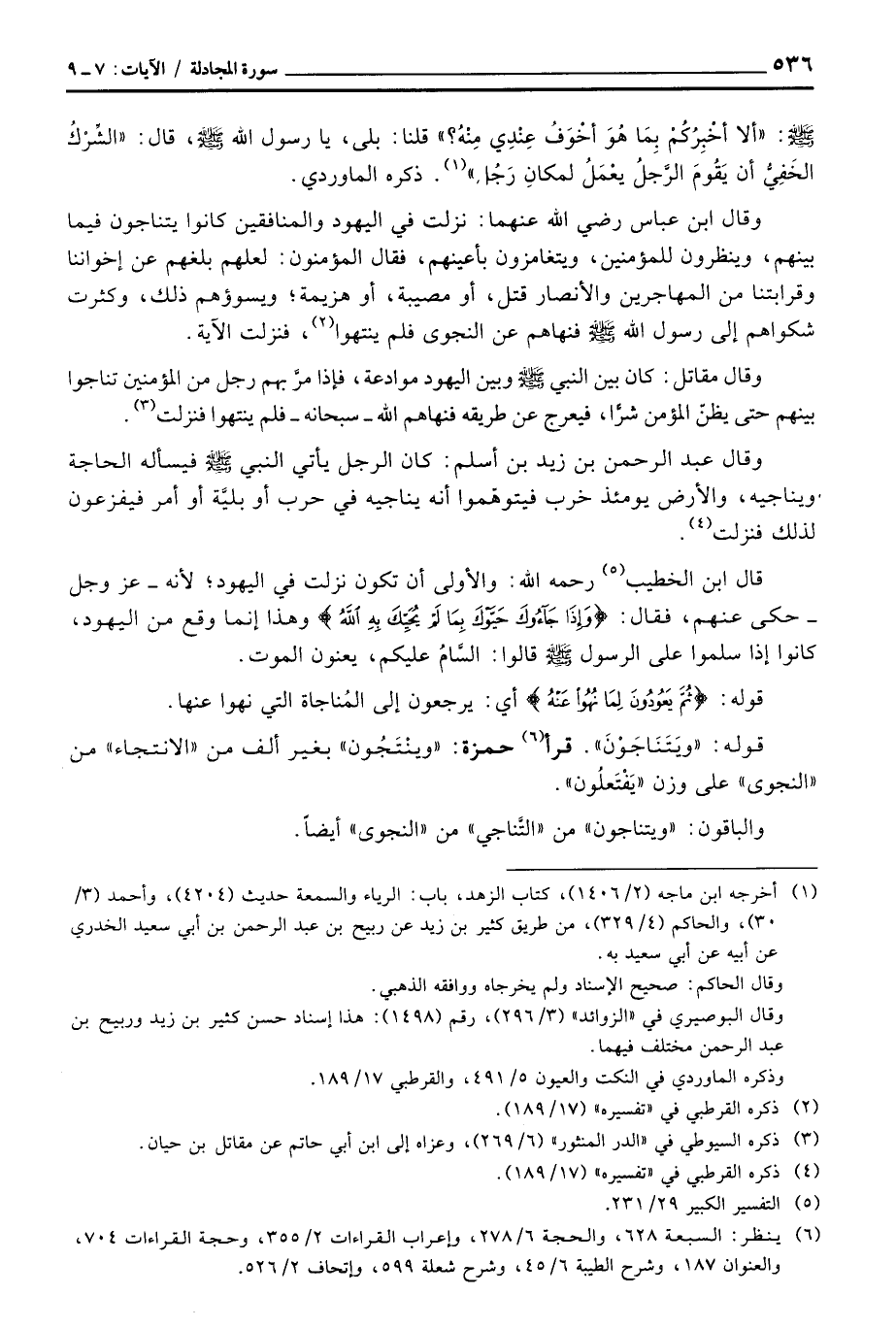 وقال ابن عباس رَضِيَ اللَّهُ عَنْهما: نزلت في اليهود والمنافقين كانوا يتناجون فيما بينهم، وينظرون للمؤمنين، ويتغامزون بأعينهم، فقال المؤمنون: لعلهم بلغهم عن إخواننا وقرابتنا من المهاجرين والأنصار قتل، أو مصيبة، أو هزيمة؛ ويسوؤهم ذلك، وكثرت شكواهم إلى رسول الله صَلَّى اللَّهُ عَلَيْهِ وَسَلَّم َ فنهاهم عن النجوى فلم ينتهوا، فنزلت الآية.