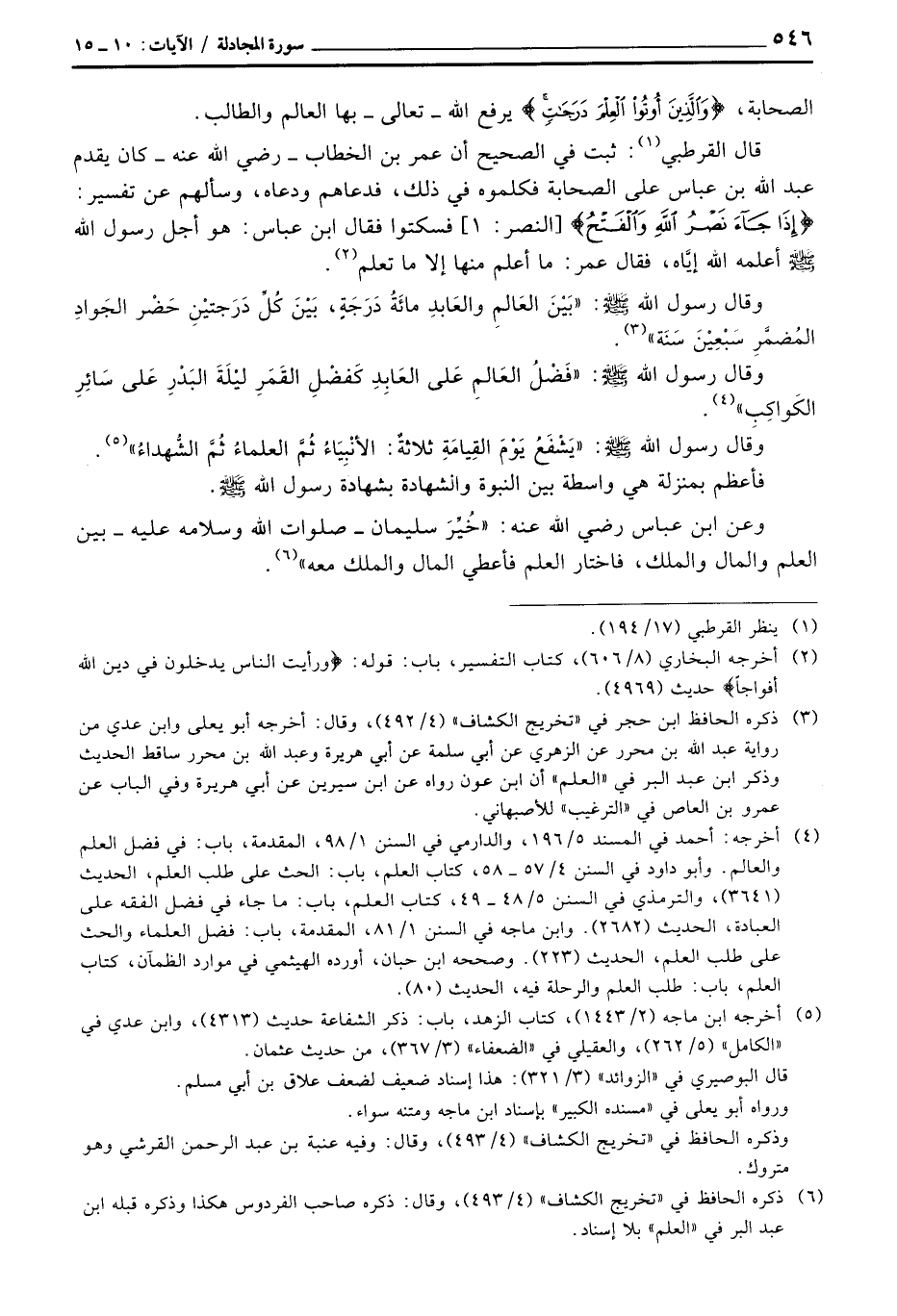 الصحابة، {والذين أُوتُواْ العلم دَرَجَاتٍ} يرفع الله - تعالى - بها العالم والطالب.