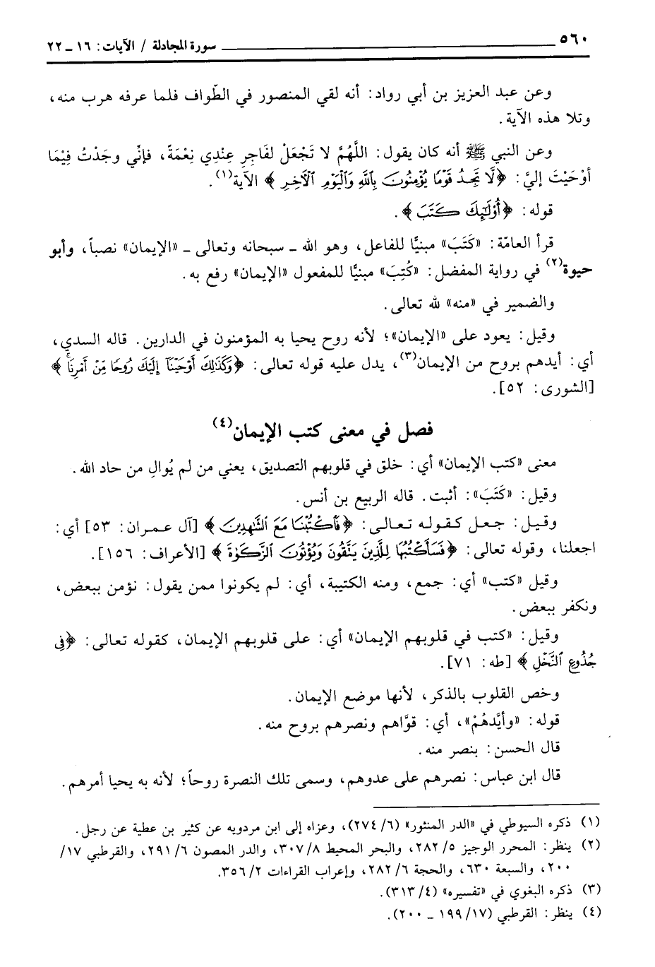 وقيل: {كتب في قلوبهم الإيمان} أي: على قلوبهم الإيمان، كقوله تعالى: {فِي جُذُوعِ النخل} [طه: 71] .