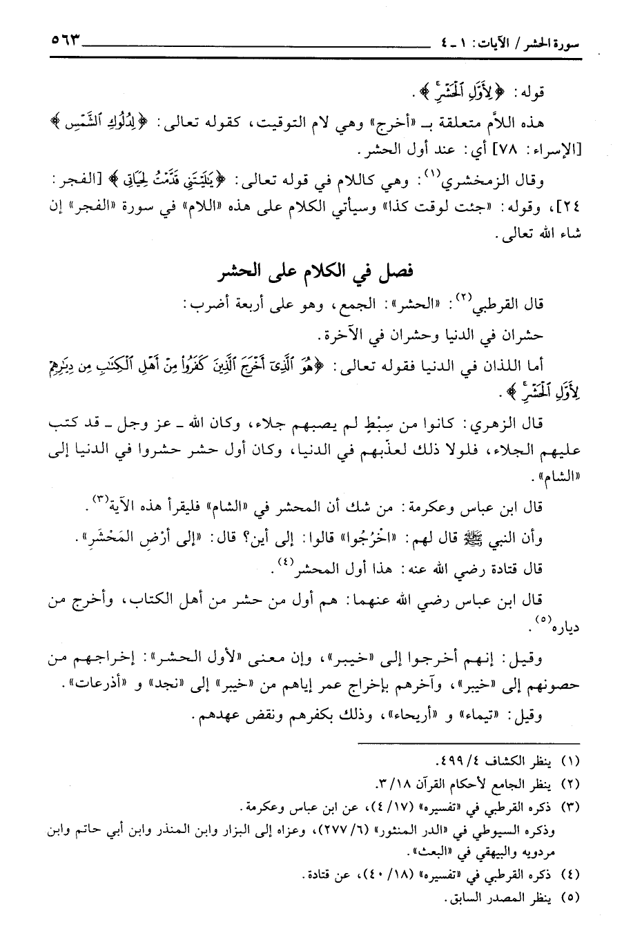 قال القرطبي: «الحشر» : الجمع، وهو على أربعة أضرب: