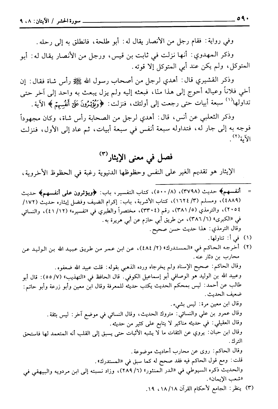 فصل في معنى الإيثار