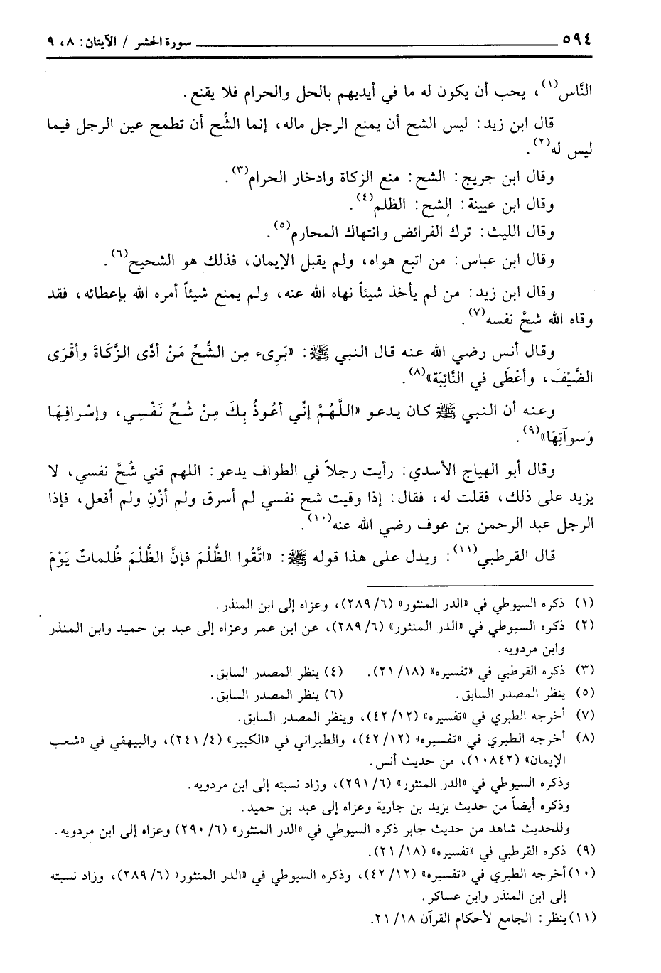وقال ابن عباس: من اتبع هواه، ولم يقبل الإيمان، فذلك هو الشحيح.