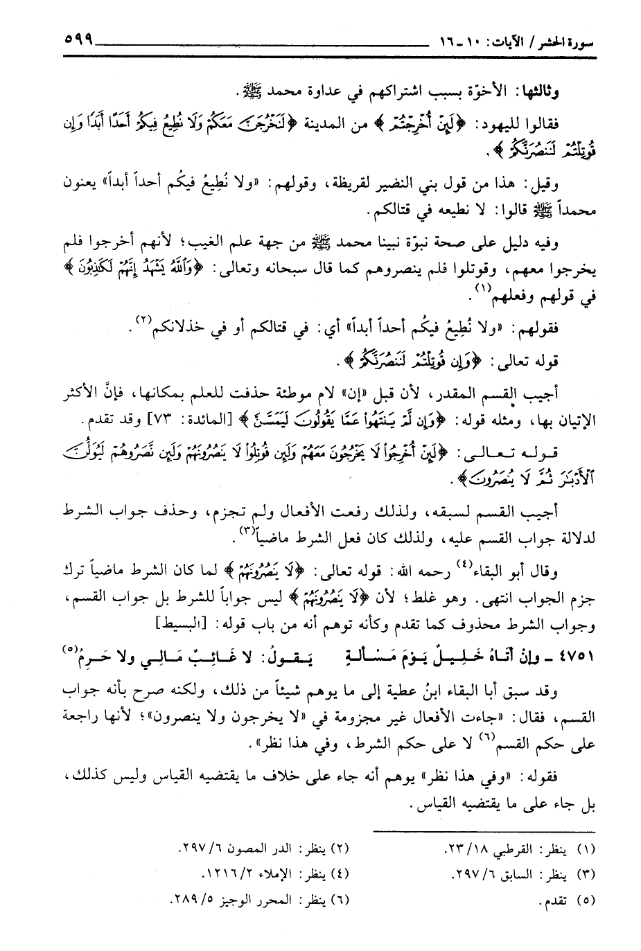 وقد سبق أبا البقاء ابنُ عطية إلى ما يوهم شيئاً من ذلك، ولكنه صرح بأنه جواب القسم، فقال: «جاءت الأفعال غير مجزومة في» لا يخرجون ولا ينصرون «؛ لأنها راجعة على حكم القسم لا على حكم الشرط، وفي هذا نظر» .