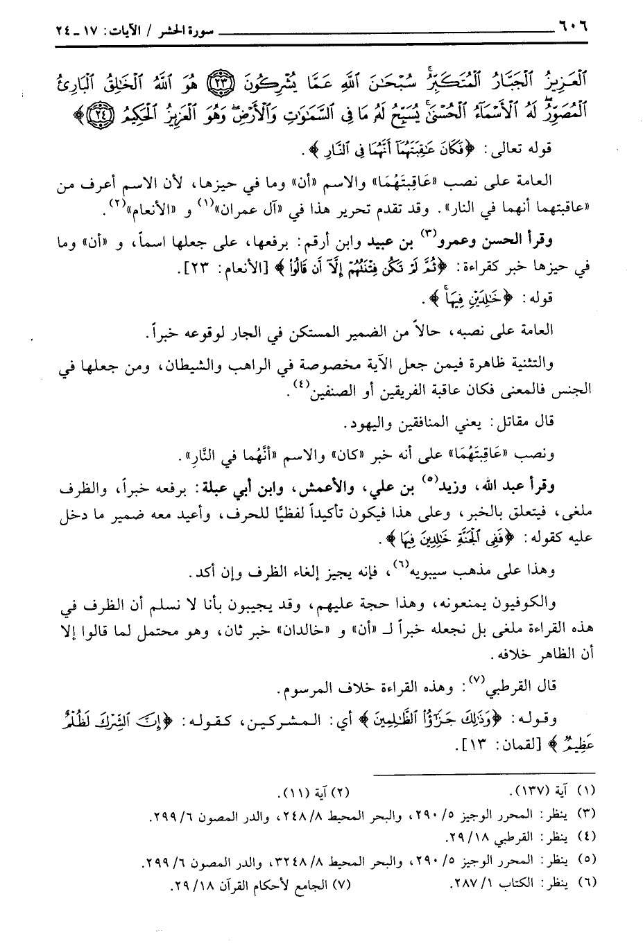 العامة على نصب «عَاقِبتَهُمَا» والاسم «أن» وما في حيزها، لأن الاسم أعرف من {عاقبتهما أنهما في النار} . وقد تقدم تحرير هذا في «آل عمران» و «الأنعام» .