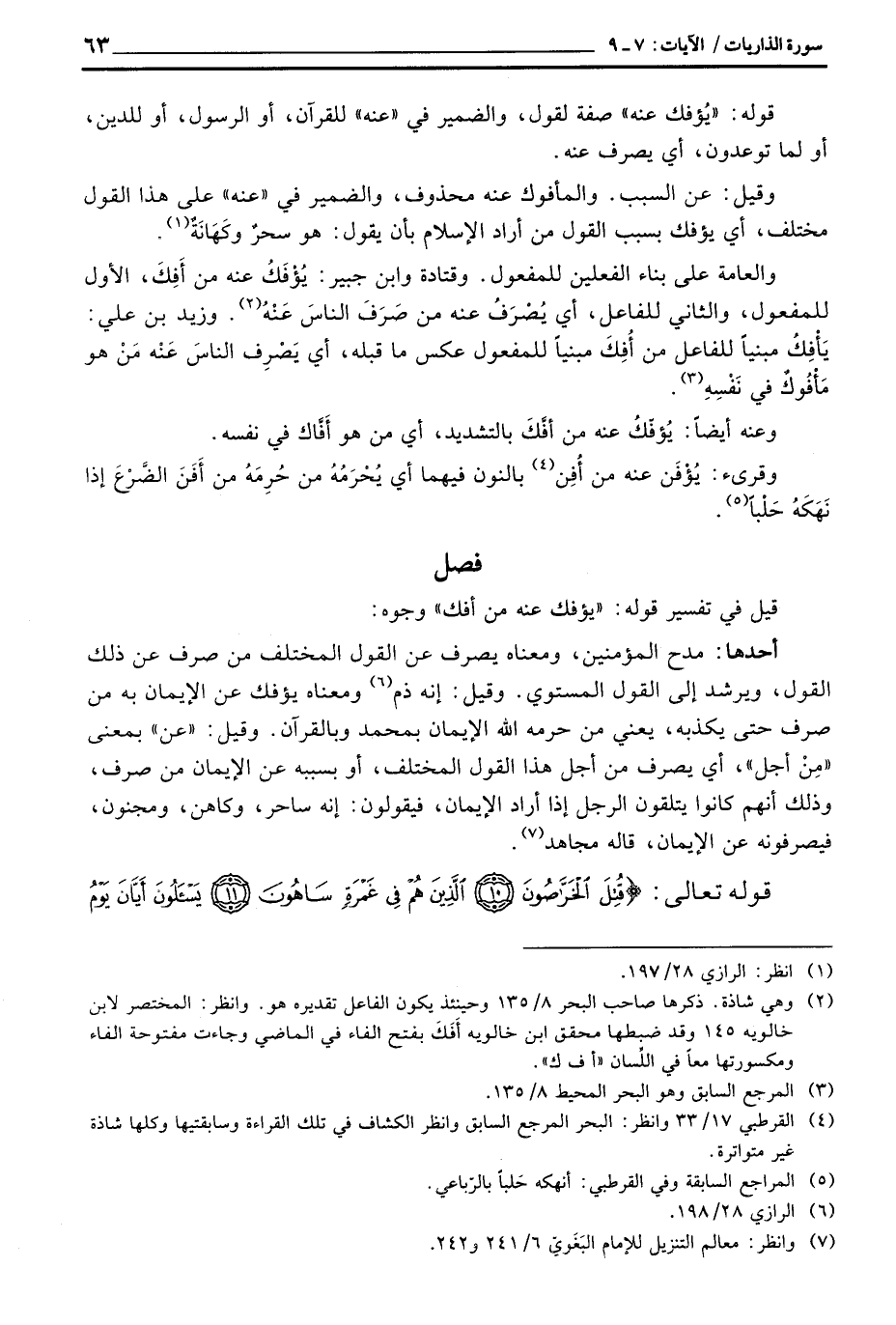 قيل في تفسير قوله: {يؤفك عنه من أفك} وجوه:
