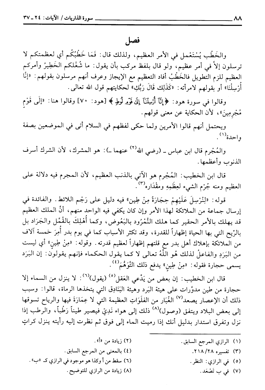 قال ابن الخطيب: إن بعض من يَدَّعي العَقل (يقول) : لا ينزل من السماء إلا حجارة من طين مدوَّرات على هيئة البَرد وهيئة البَنَادِق التي يتخذها الرماة، قالوا: وسبب ذلك أن الإعصار يصعد الغُبَار من الفلَوَاتِ العظيمة التي لا عِمَارَةَ فيها والرياح تسوقها إلى بعض البلاد ويتفق (وصول) ذلك إلى هواء نَدِيّ فيصير طيناً رَطْباً، والرطب إذا نزل وتفرق استدار بدليل أنك إذا رميت الماء إلى فوق ثم نظرت إليه رأيته ينزل كراتٍ