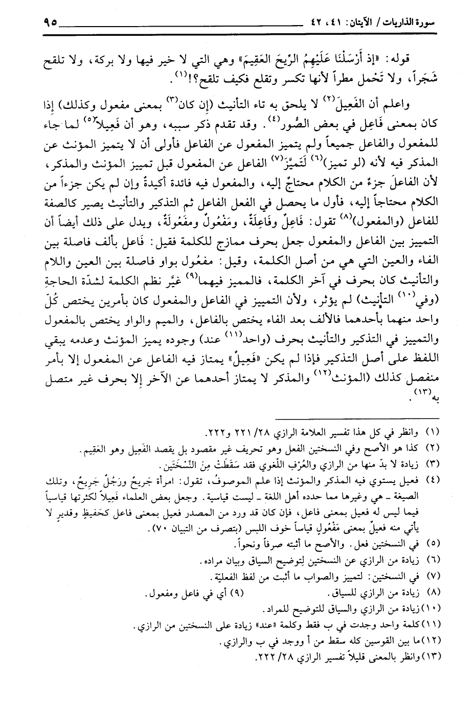 واعلم أن الفَعِيلَ لا يلحق به تاء التأنيث (إِن كان بمعنى مفعول وكذلك) إِذا كان بمعنى فَاعِل في بعض الصُّور. وقد تقدم ذكر سببه، وهو أن فَعِيلاً لما جاء للمفعول والفاعل جميعاً ولم يتميز المفعول عن الفاعل فأولى أن لا يتميز المؤنث عن المذكر فيه لأنه (لو تميز) لَتَميَّزَ الفاعل عن المفعول قبل تمييز المؤنث والمذكر، لأن الفاعلَ جزءٌ من الكلام محتاجٌ إليه، والمفعول فيه فائدة أكيدةٌ وإن لم يكن جزءاً من الكلام محتاجاً إليه، فأول ما يحصل في الفعل الفاعل ثم التذكير والتأنيث يصير كالصفة للفاعل (والمفعول) تقول: فَاعِلٌ وفَاعِلَةٌ، ومَفْعُولٌ ومفَعُولَةٌ، ويدل على ذلك أيضاً أن التمييز بين الفاعل والمفعول جعل بحرف ممازج للكلمة فقيل: فَاعل بألف فاصلة بين الفاء والعين التي هي من أصل الكلمة، وقيل: مفعُول بواو فاصلة بين العين واللام والتأنيث كان بحرف في آخر الكلمة، فالمميز فيهما غيَّر نظم الكلمة لشدّة الحاجةِ (وفي التأنيث) لم يؤثر، ولأن التمييز في الفاعل والمفعول كان بأمرين يختص كُلّ واحد منهما بأحدهما فالألف بعد الفاء يختص بالفاعل، والميم والواو يختص بالمفعول والتمييز في التذكير والتأنيث بحرف (واحد عند) وجوده يميز المؤنث وعدمه يبقي اللفظ على أصل التذكير فإذا لم يكن «فَعِيلٌ» يمتاز فيه الفاعل عن المفعول إلا بأمر منفصل كذلك (المؤنث والمذكر لا يمتاز أحدهما عن الآخر إِلا بحرف غير متصل به.