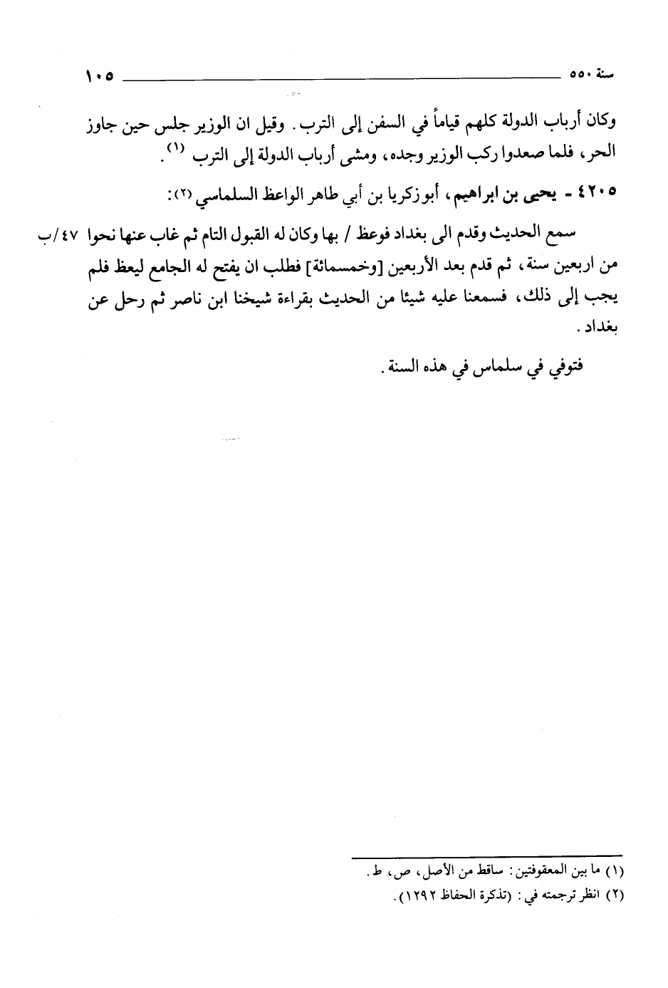 4205- يحيى بن إبراهيم، أبو زكريا بن أبي طاهر الواعظ السلماسي