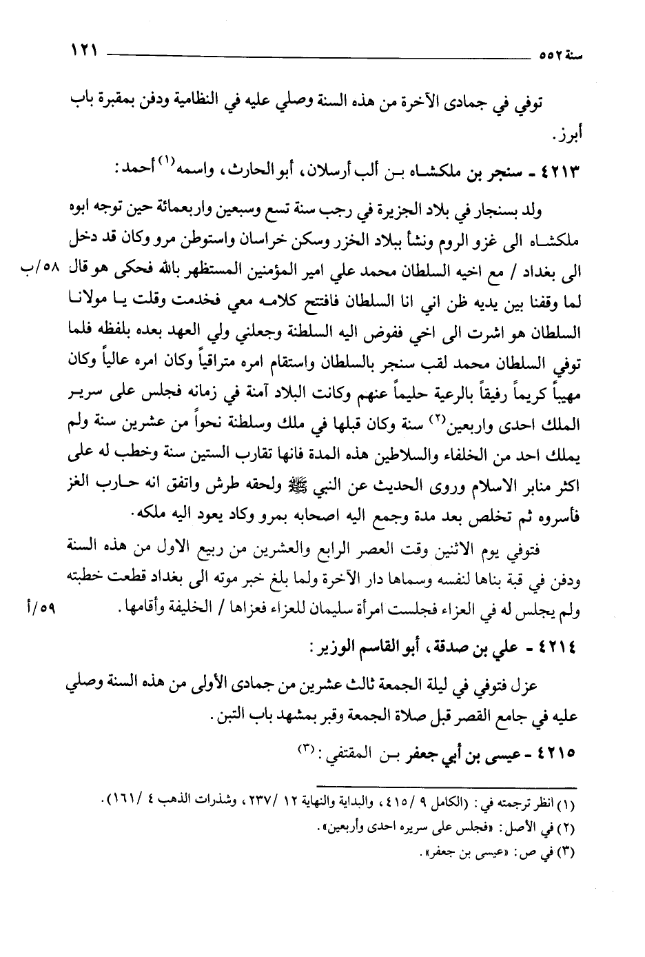 4213- سنجر بن ملك شاه بن ألب أرسلان، أبو الحارث، واسمه [1] أحمد: