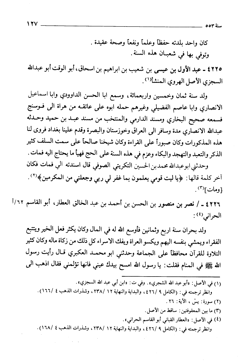 4225- عبد الأول بن عيسى بن شعيب بن إبراهيم بن إسحاق، أبو الوقت أبو عبد الله السجزي الاصل الهروي المنشأ