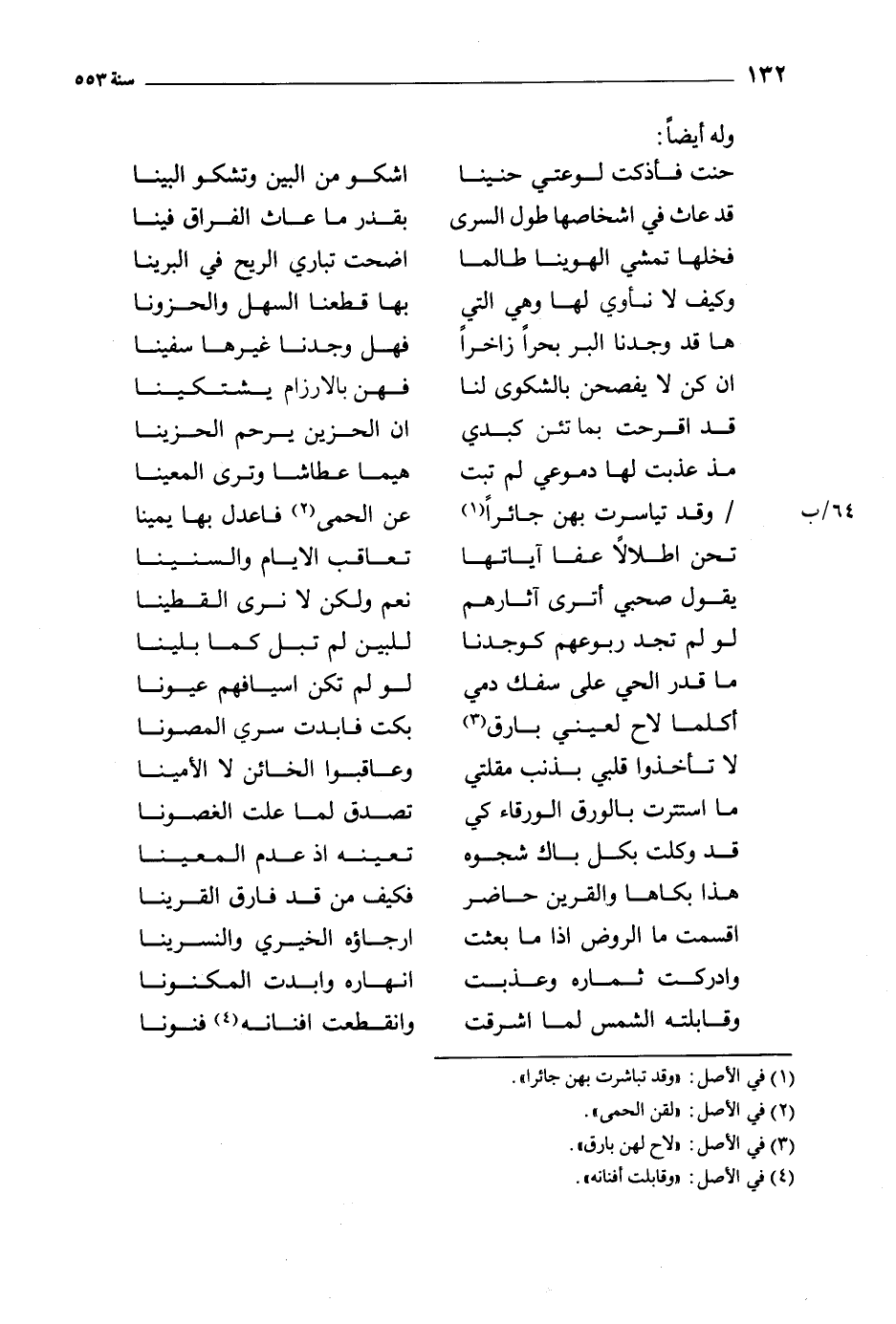 64/ ب/ وقد تياسرت بهن جائرا [1] ... عن الحمى [2] فاعدل بها يمينا