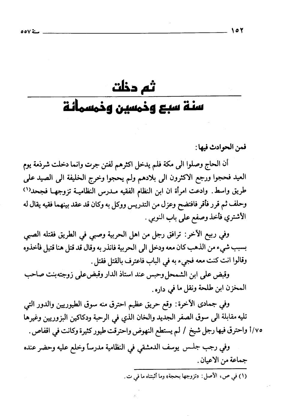 ثم دخلت سنة سبع وخمسين وخمسمائة