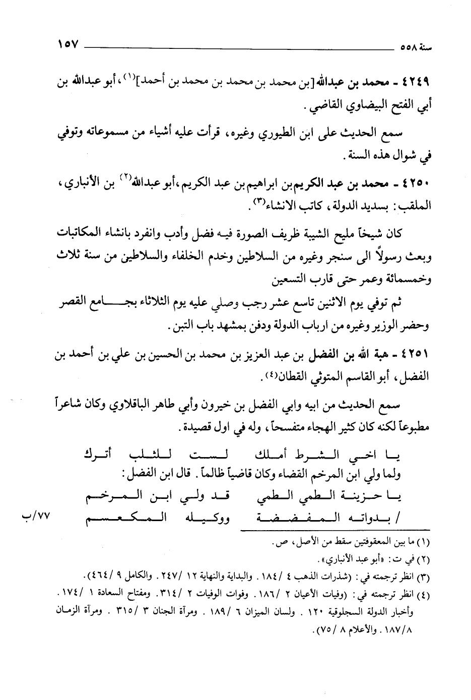 4250- محمد بن عبد الكريم بن إبراهيم بن عبد الكريم، أبو عبد الله [2] بن الأنباري، الملقب: بسديد الدولة، كاتب الإنشاء