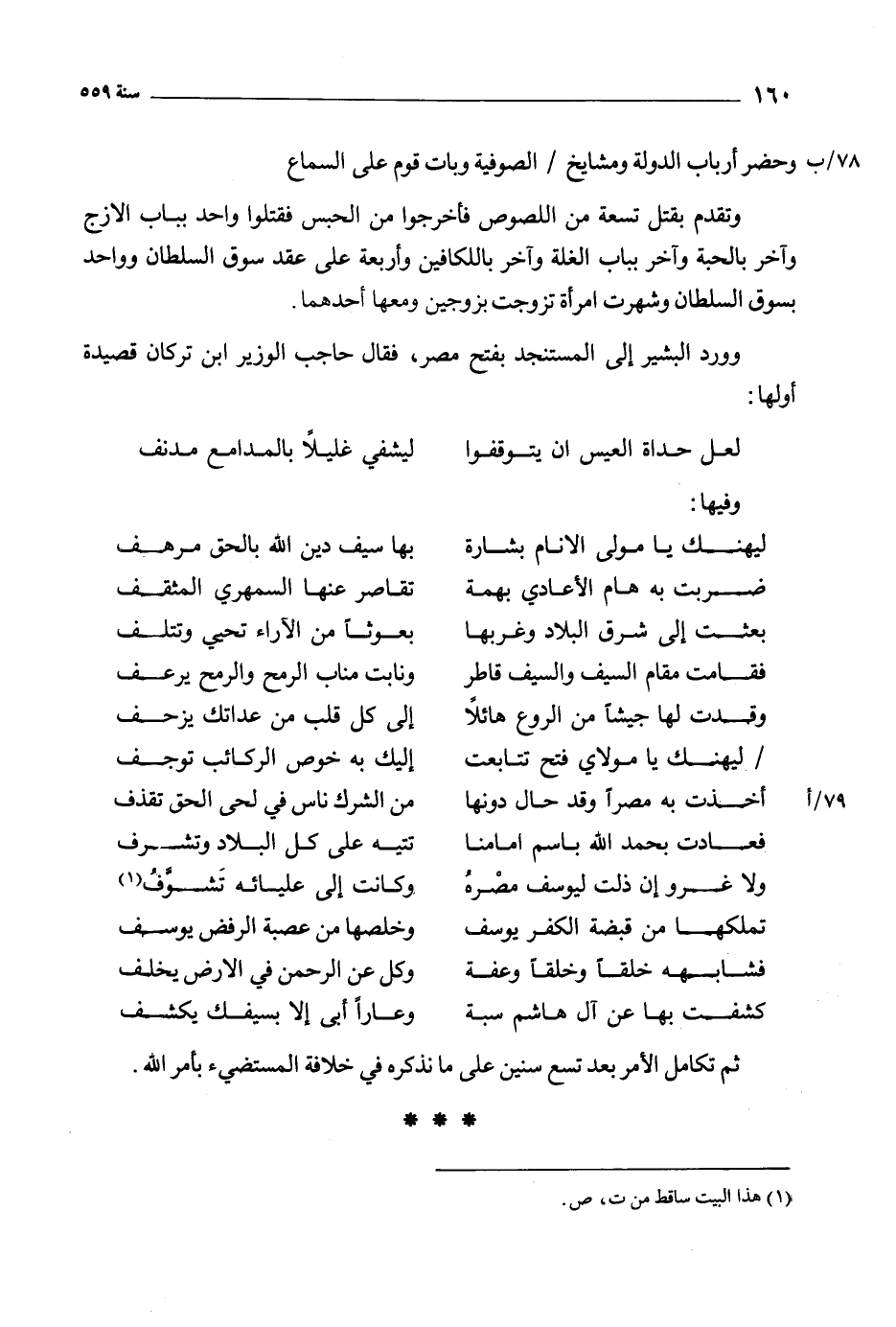 وورد البشير إلى المستنجد بفتح مصر، فقال حاجب الوزير ابن تركان قصيدة أولها: