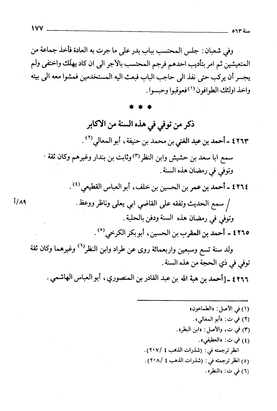 / سمع الحديث وتفقه على القاضي أبي يعلى وناظر ووعظ. 89/ أوتوفي في رمضان هذه السنة ودفن بالحلبة.