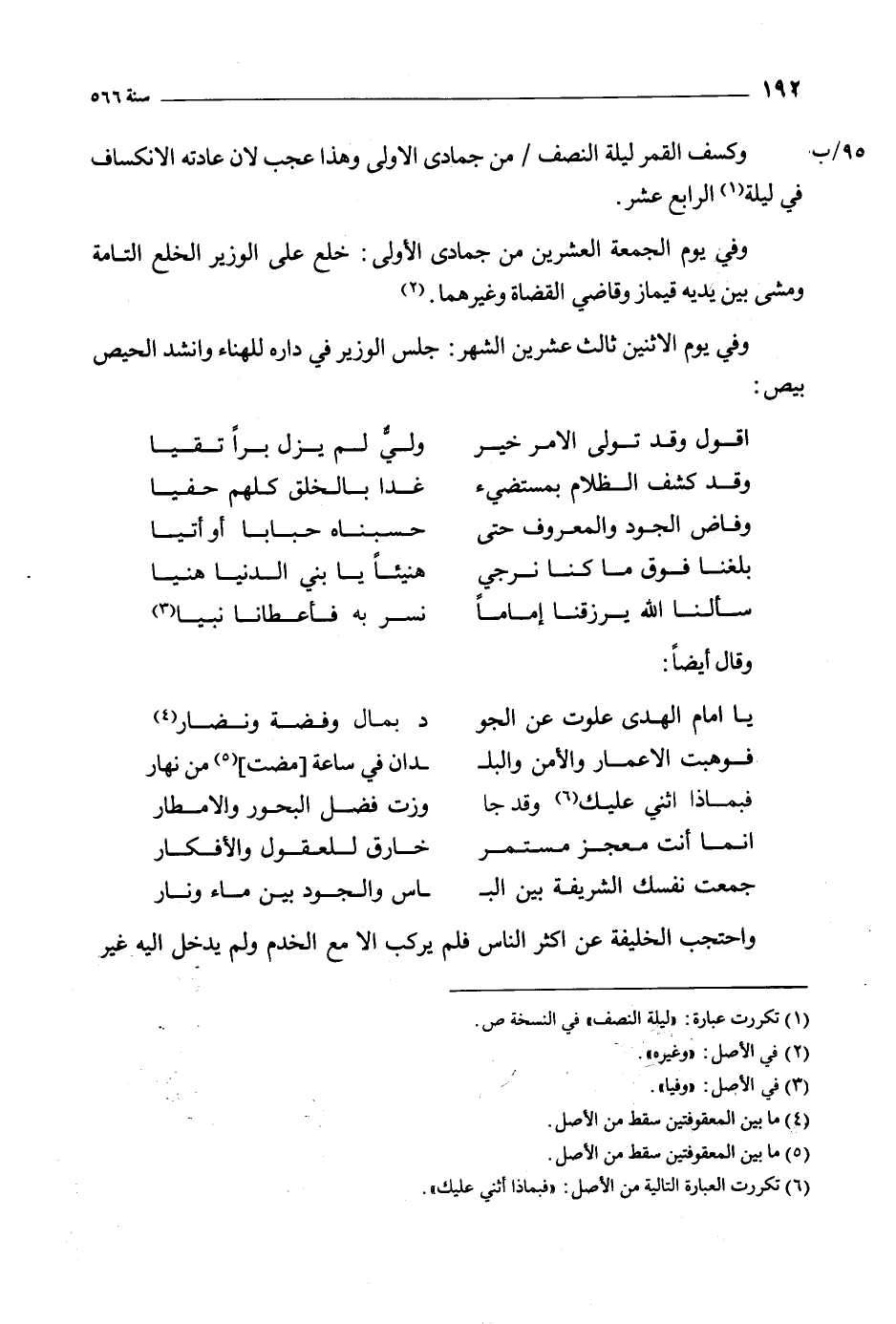 95/ ب وكسف القمر ليلة النصف/ من جمادى الأولى وهذا عجب لان عادته الانكساف في ليلة [1] الرابع عشر.