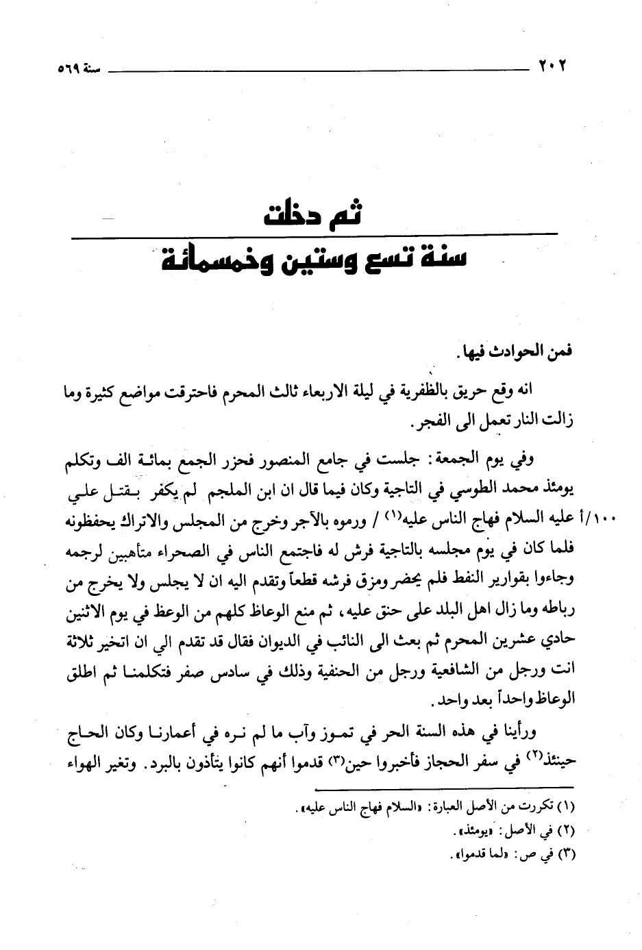ورأينا في هذه السنة الحر في تموز وآب ما لم نره في أعمارنا وكان الحاج حينئذ [2] في سفر الحجاز فاخبروا حين [3] قدموا أنهم كانوا يتأذون بالبرد. وتغير الهواء
