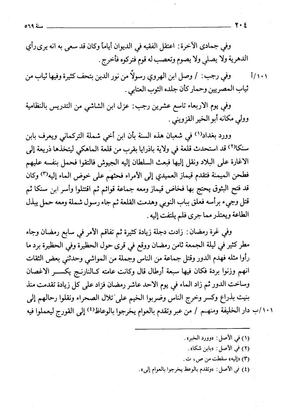 101/ أوفي رجب: / وصل ابن الهروي رسولا من نور الدين بتحف كثيرة وفيها ثياب من ثياب المصريين وحمار كأن جلده الثوب العتابي.