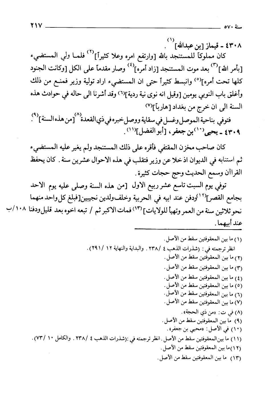 [11] ما بين المعقوفتين سقط من الأصل. انظر ترجمته في: (شذرات الذهب 4/ 238. والكامل 10/ 73) .