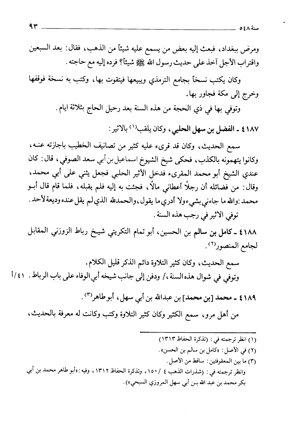 4188- كامل بن سالم بن الحسين، أبو تمام التكريتي شيخ رباط الزوزني المقابل لجامع المنصور