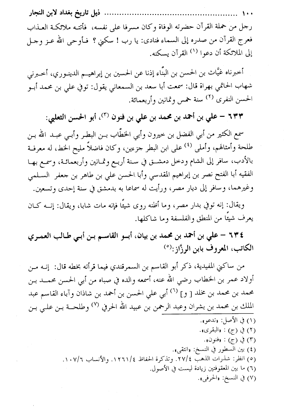 634- علي بن أحمد بن مُحَمَّد بن بيان، أبو القاسم بن أبي طالب العمري الكاتب، المعروف بابن الرزاز: [5]