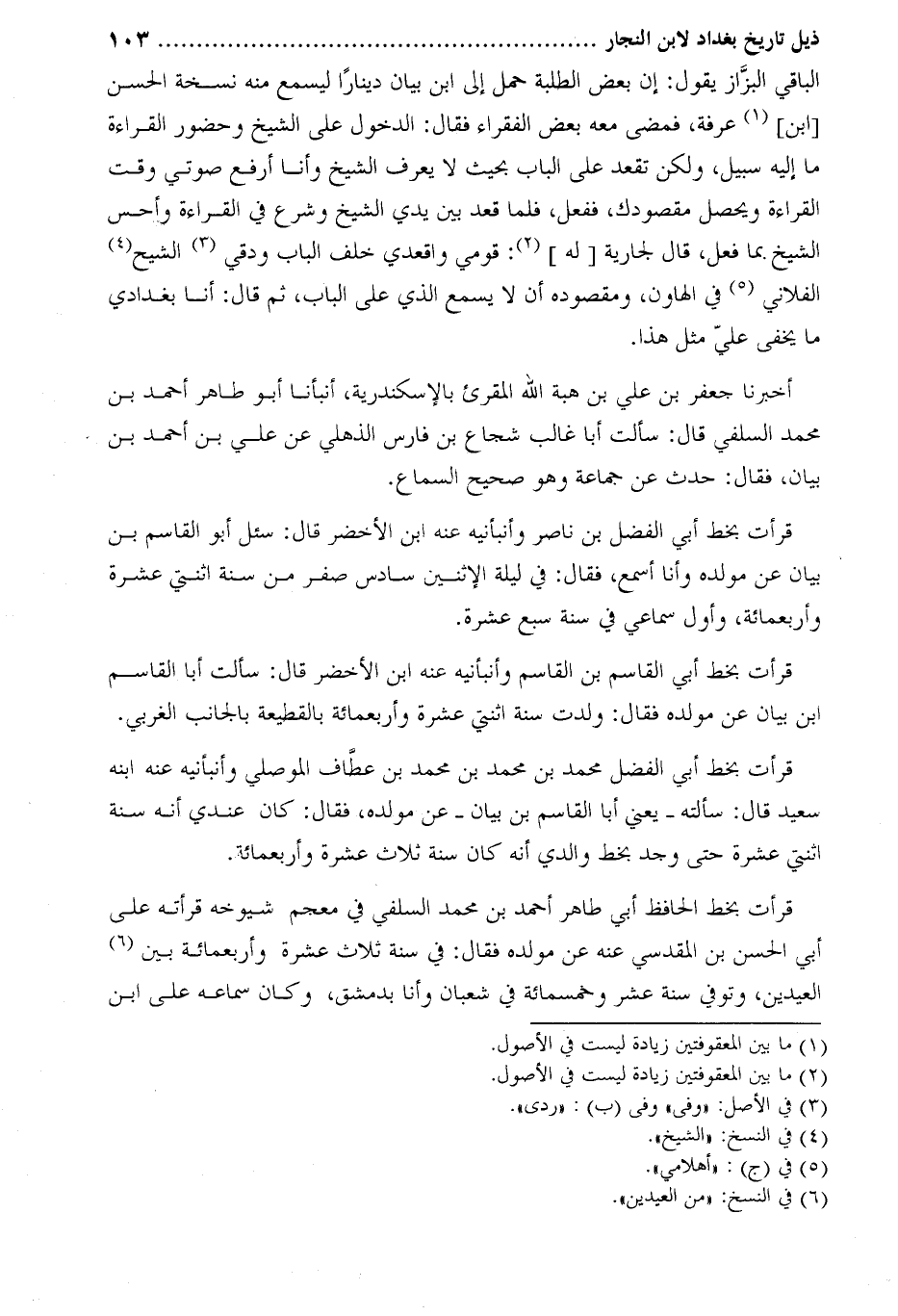قرأت بخط الحافظ أبي طاهر أحمد بن مُحَمَّد السلفي في معجم شيوخه قرأته على أبي الحسن بن المقدسي عنه عن مولده فقال: في سنة ثلاث عشرة وأربعمائة بين [6] العيدين، وتوفي سنة عشر وخمسمائة في شعبان وأنا بدمشق، وكان سماعه على ابن