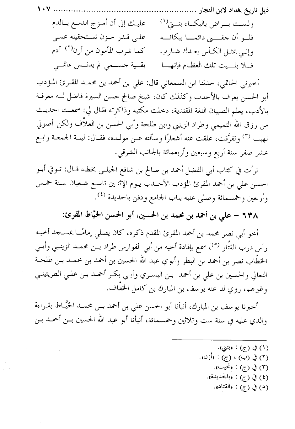 638- علي بن أَحْمَد بن مُحَمَّد بن الحسين، أبو الحسن الخياط المقرئ: