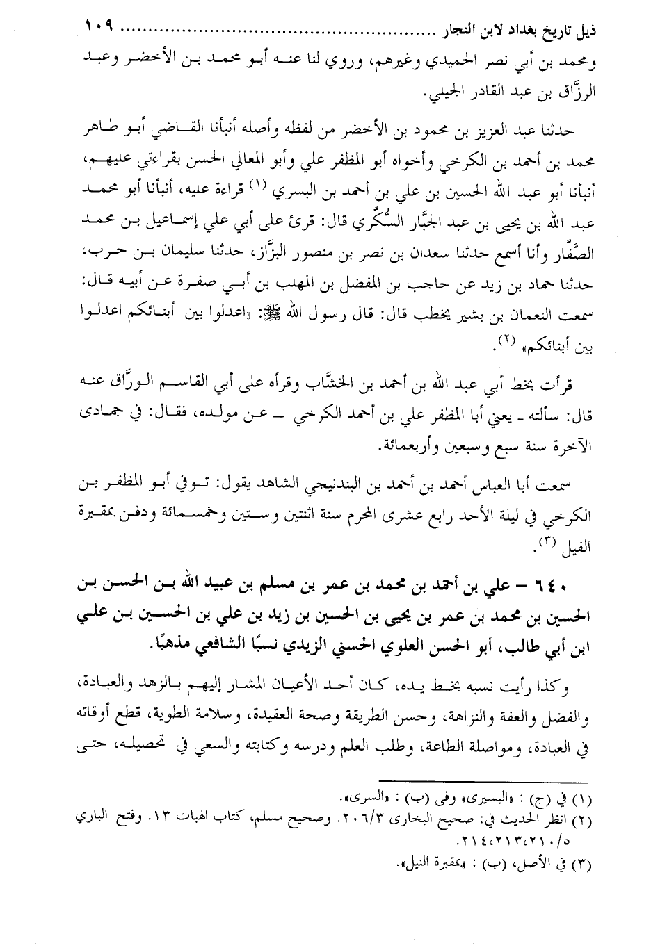 640- عليّ بْن أَحْمَدَ بْنِ مُحَمَّد بْن عُمَر بن مسلم بن عبيد الله بْن الْحَسَن بْن الْحُسَيْن بْن مُحَمَّد بْنِ عُمَر بْن يَحْيَى بْن الْحُسَيْن بْن زيد بْن علي بْن الحسين بن علي ابن أبي طالب، أبو الحسن العلوي الحسني الزيدي نسبا الشافعي مذهبا.