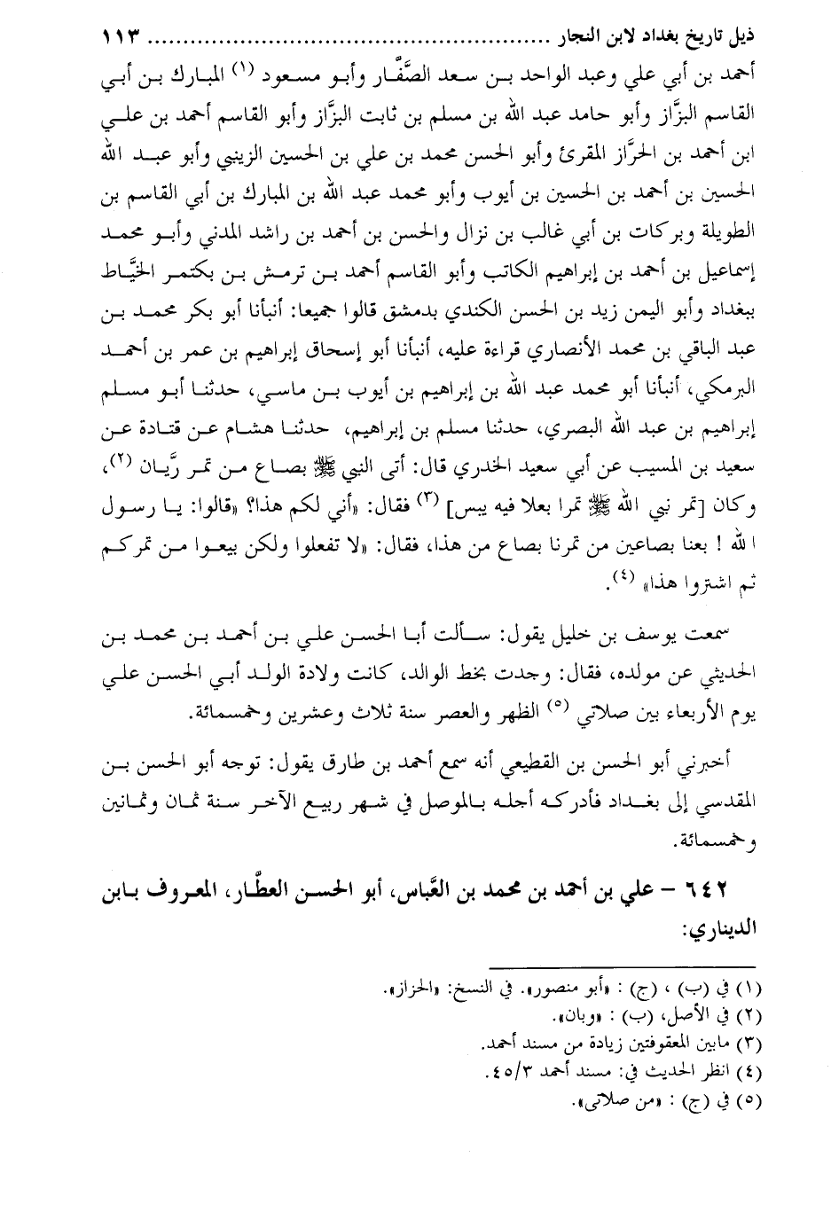 642- عليّ بْن أَحْمَد بْن مُحَمَّد بْن الْعَبَّاس، أَبُو الحسن العطّار، المعروف بابن الديناري: