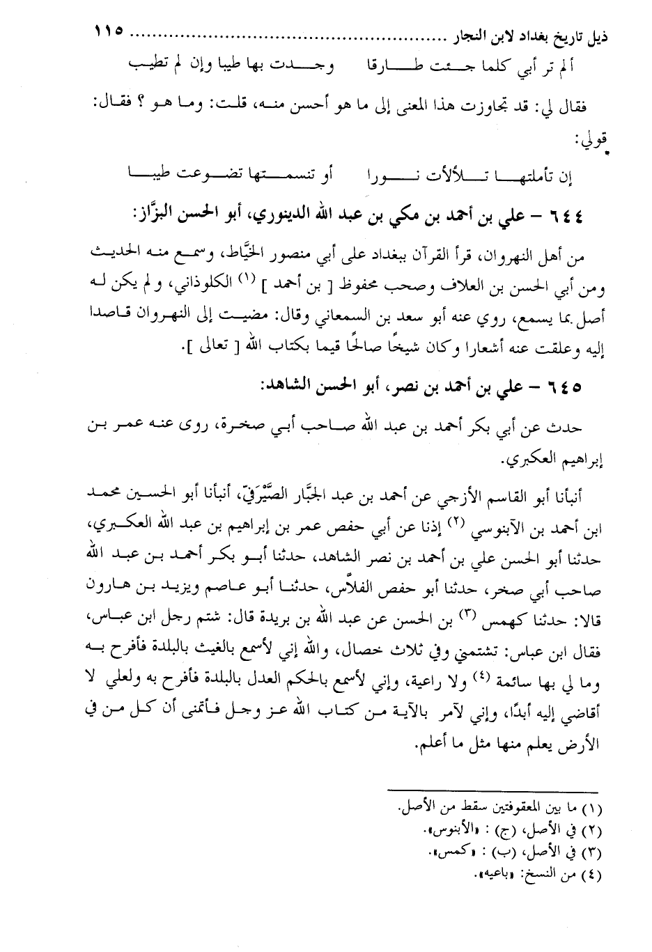644- علي بن أحمد بن مكي بن عبد الله الدينوري، أبو الحسن البزاز: