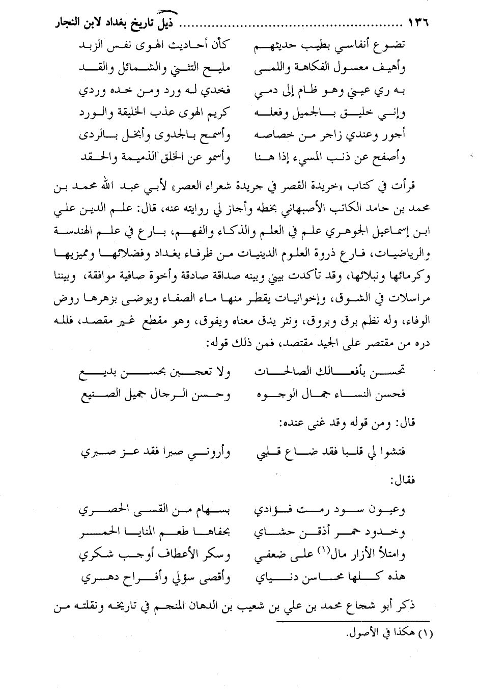 ذكر أبو شجاع مُحَمَّد بن علي بن شعيب بن الدهان المنجم في تاريخه ونقلته من