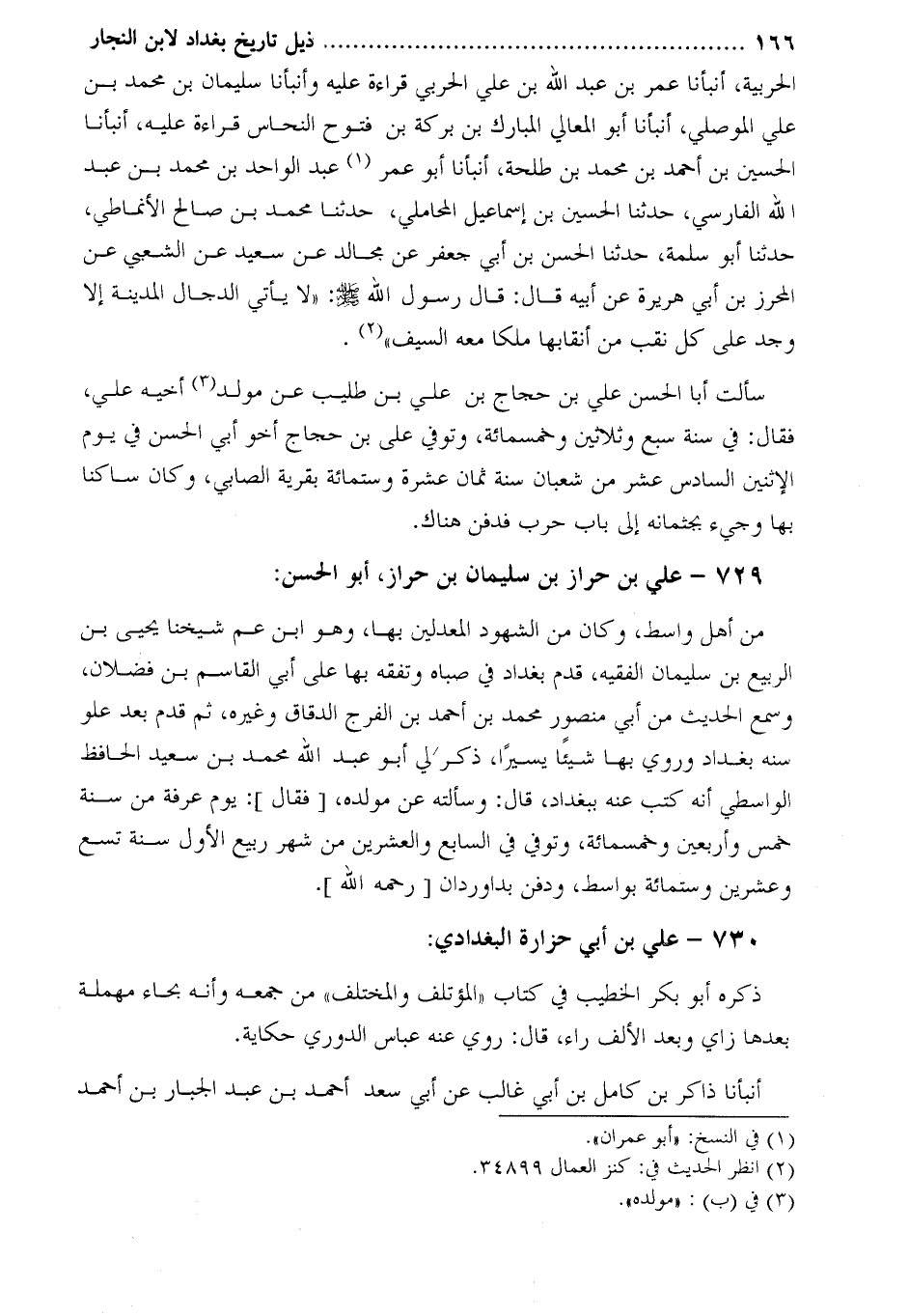 729- علي بن حراز بن سُلَيْمَان بن حراز، أبو الحسن: