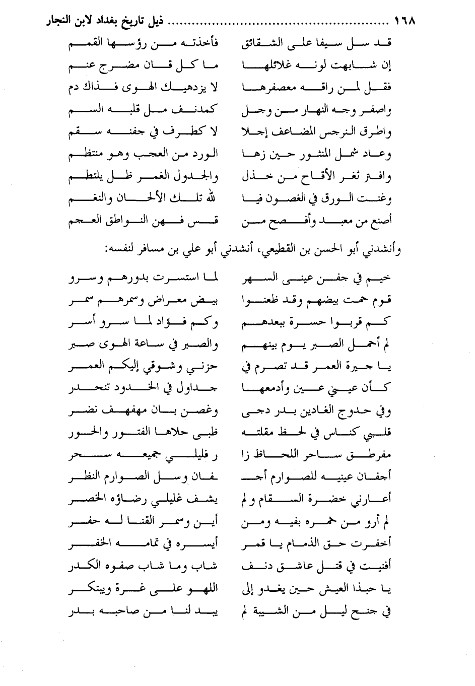 وأنشدني أبو الحسن بن القطيعي، أنشدني أبو علي بن مسافر لنفسه: