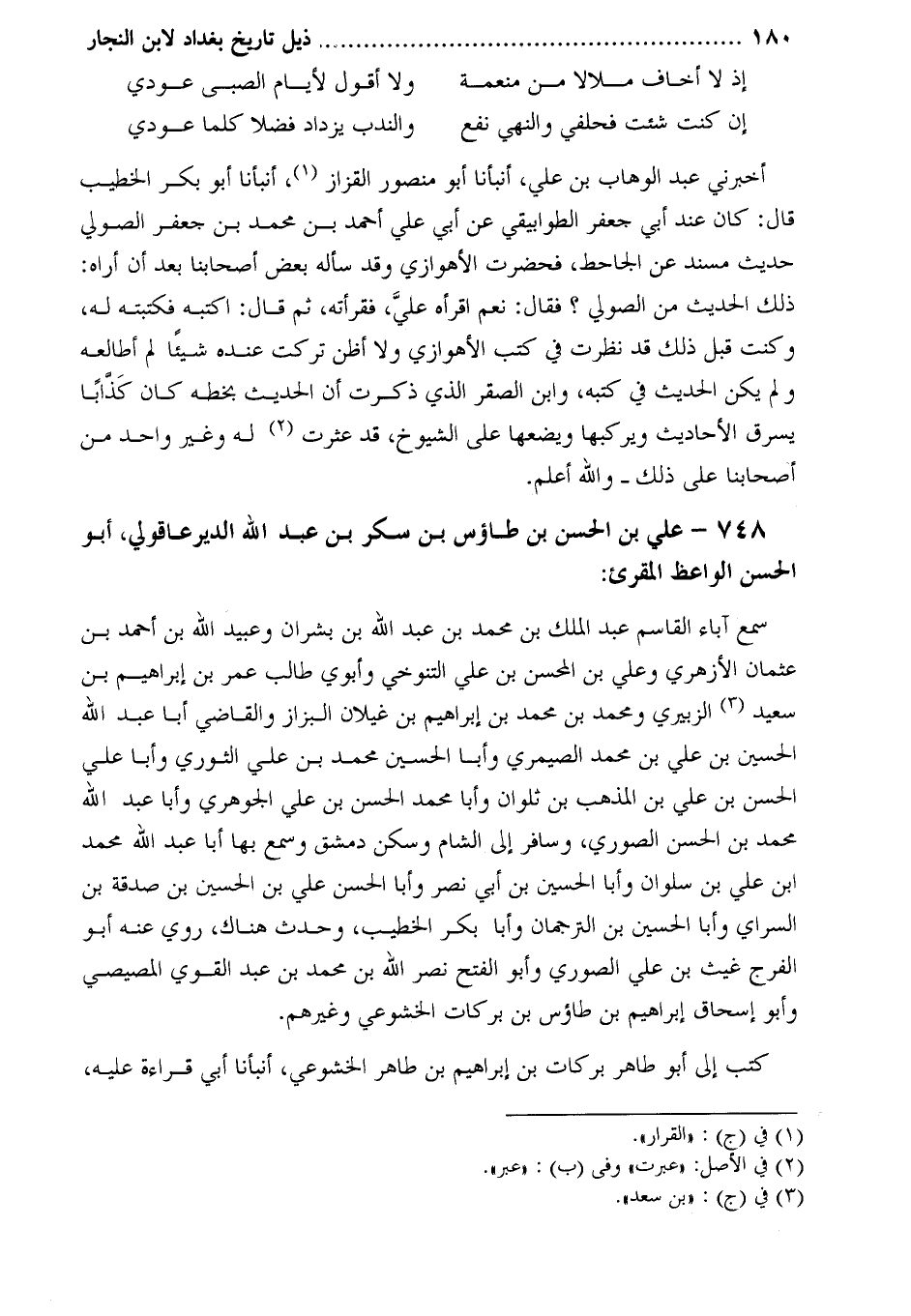 748- علي بن الحسن بن طاوس بن سكر بن عبد الله الديرعاقولي، أبو الحسن الواعظ المقرئ: