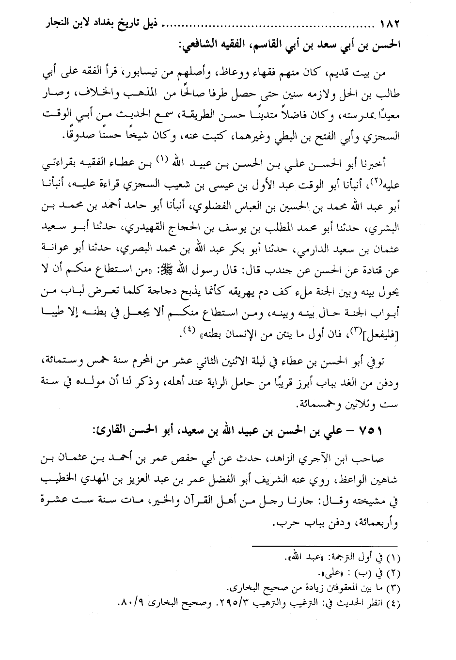 751- علي بن الحسن بن عبيد الله بن سعيد، أبو الحسن القارئ: