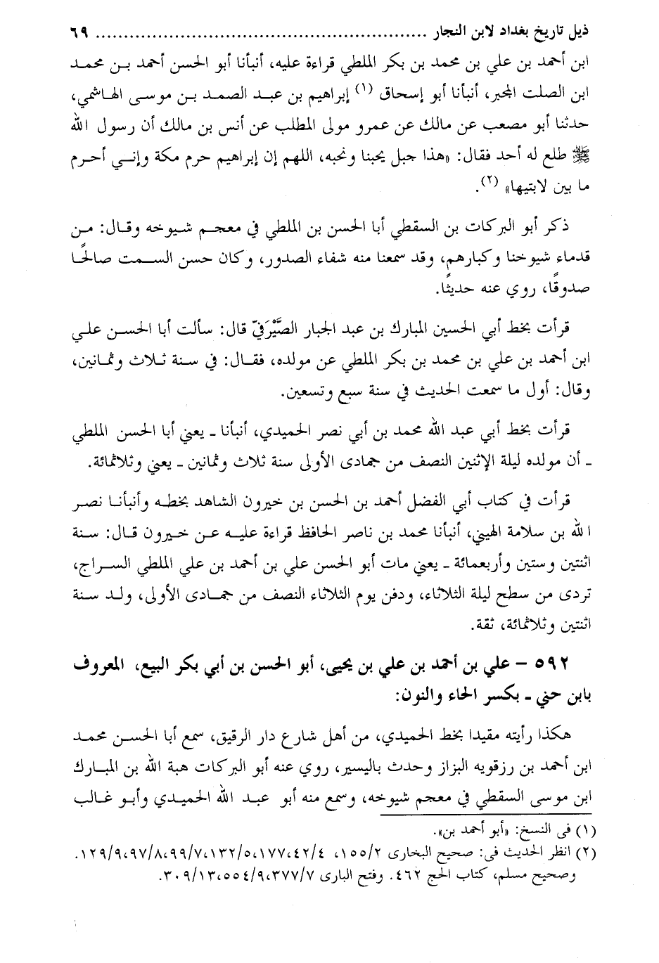 592- علي بْن أَحْمَد بْن علي بْن يَحيى، أَبُو الْحَسَن بْن أَبِي بَكْر البيع، المعروف بابن حِنِي- بكسر الحاء والنون: