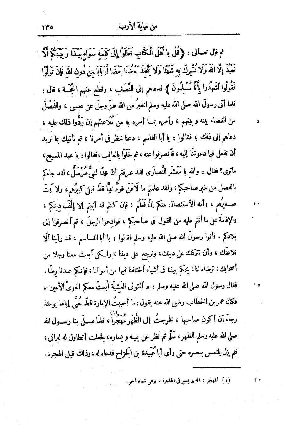 فلما أتى رسول الله صلّى الله عليه وسلّم الخبر من الله عزّ وجلّ عن عيسى، والفصل من القضاء بينه وبينهم، وأمره به من ملاعتهم إن ردّوا ذلك عليه، دعاهم إلى ذلك؛ فقالوا: يا أبا القاسم، دعنا ننظر فى أمرنا، ثم نأتيك بما نريد أن نفعل فيما دعوتنا إليه، فانصرفوا عنه، ثم خلوا بالعاقب، فقالوا: يا عبد المسيح، ما ترى؟ فقال: والله يا معشر النّصارى لقد عرفتم أنّ محمدا لنبىّ مرسل، لقد جاءكم بالفصل من خبر صاحبكم، ولقد علمتم ما لا عن قوم نبيّا قطّ فبقى كبيرهم، ولا نبت صغيرهم، وأنه الاستئصال منكم إن فعلتم، فإن كنتم قد أبيتم إلا إلف دينكم، والإقامة على ما أنتم عليه من القول فى صاحبكم، فوادعوا الرجل، ثم انصرفوا إلى بلادكم. فأتوا رسول الله صلّى الله عليه وسلّم فقالوا: يا أبا القاسم، قد رأينا ألّا نلاعنك، وأن نتركك على دينك، ونرجع على ديننا، ولكن ابعث معنا رجلا من أصحابك، ترضاه لنا، يحكم بيننا فى أشياء اختلفنا فيها من أموالنا، فإنكم عندنا رضا.