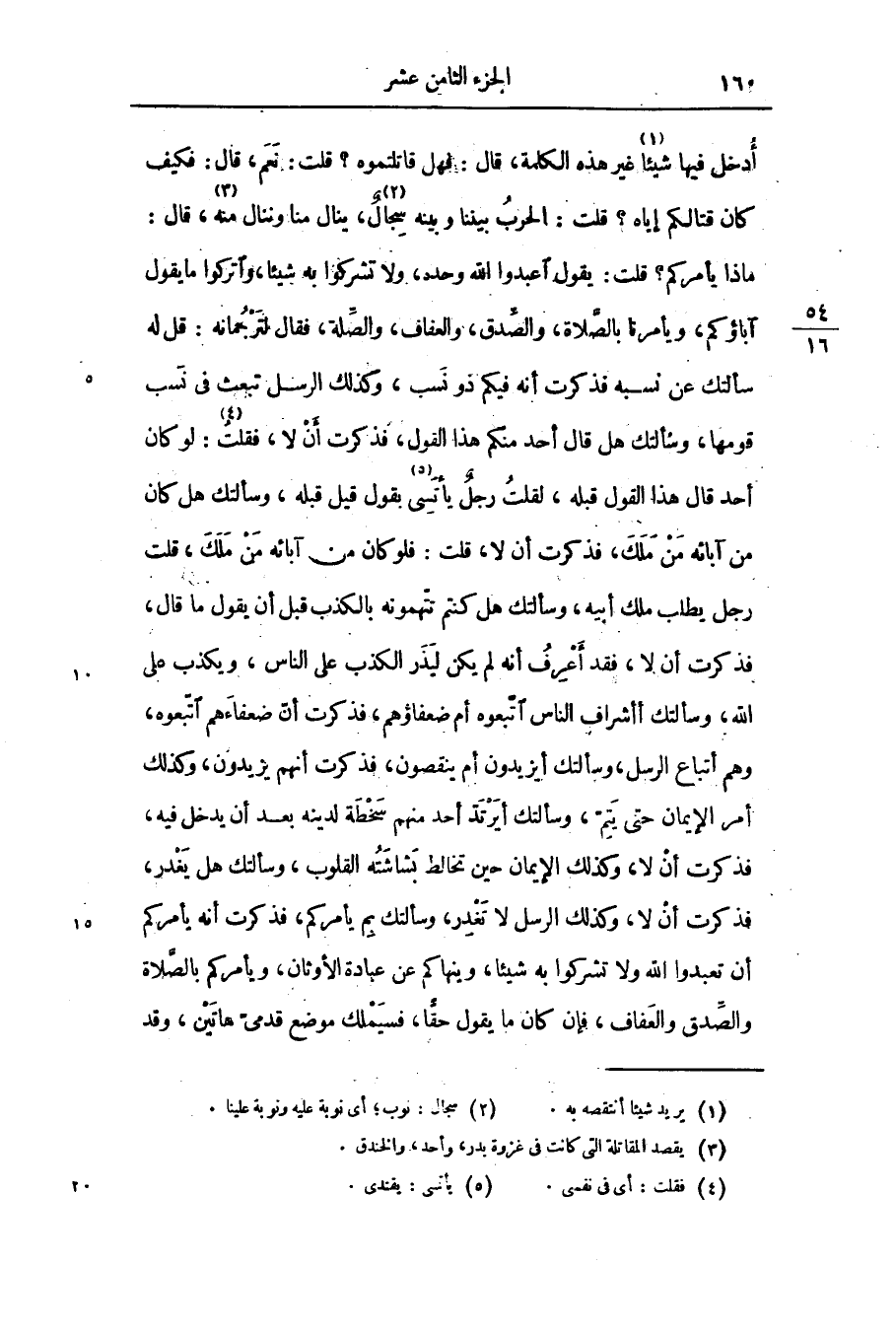 أدخل فيها شيئا «1» غير هذه الكلمة، قال: فهل قاتلتموه؟ قلت: نعم، قال: فكيف كان قتالكم إياه؟ قلت: الحرب بيننا وبينه سجال «2» ، ينال منا وننال منه «3» ، قال: