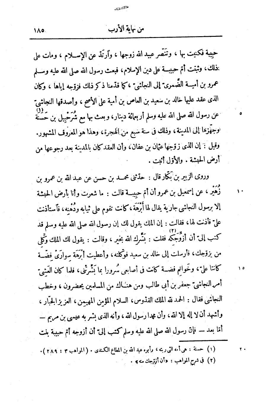 وروى الزبير بن بكّار قال: حدّثنى محمد بن حسن عن عبد الله بن عمرو بن زهير، عن إسمعيل بن عمرو أن أمّ حبيبة قالت: ما شعرت وأنا بأرض الحبشة إلا برسول النجاشى جارية يقال لها أبرهة، كانت تقوم على ثيابه ودهنه، فاستأذنت علىّ فأذنت لها، فقالت: إن الملك يقول لك إن رسول الله صلّى الله عليه وسلّم قد كتب إلىّ أن أزوّجكه «2» فقلت: بشّرك الله بخير، وقالت: يقول لك الملك وكلّى من يزوّجك، فأرسلت إلى خالد بن سعيد فوكّلته، وأعطيت أبرهة سوارى فضّة كانتا علىّ، وخواتم فضة كانت فى أصابعى سرورا بما بشّرتنى، فلما كان العشىّ أمر النجاشىّ جعفر بن أبى طالب ومن هناك من المسلمين يحضرون، وخطب النجاشى فقال: الحمد لله الملك القدّوس، السلام المؤمن المهيمن، العزيز الجبّار، وأشهد أن لا إله إلا الله، وأن محمدا رسول الله، وأنه الذى بشر به عيسى بن مريم- أمّا بعد- فإنّ رسول الله صلّى الله عليه وسلّم كتب إلىّ أن أزوجه أمّ حبيبة بنت