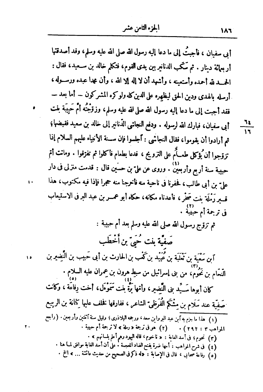 الحمد لله أحمده وأستعينه، وأشهد أن لا إله إلا الله، وأن محمدا عبده ورسوله، أرسله بالهدى ودين الحق ليظهره على الدين كله ولو كره المشركون- أما بعد- فقد أجبت إلى ما دعا إليه رسول الله صلّى الله عليه وسلّم، وزوّجته أمّ حبيبة بنت أبى سفيان، فبارك الله لرسوله. ودفع النجاشى الدّنانير إلى خالد بن سعيد فقبضها؛ ثم أرادوا أن يقوموا، فقال النجاشى: اجلسوا فإن سنة الأنبياء عليهم السلام إذا تزوّجوا أن يؤكل طعام على التزويج، فدعا بطعام فأكلوا ثم تفرّقوا. وماتت أمّ حبيبة سنة أربع وأربعين «1» . وروى عن علىّ بن حسين قال: قدمت منزلى فى دار علىّ بن أبى طالب، فحفرنا فى ناحية منه فأخرجنا منه حجرا فإذا فيه مكتوب، هذا قبر رملة بنت صخر، فأعدناه مكانه، حكاه أبو عمر بن عبد البر فى الاستيعاب فى ترجمة أم حبيبة «2» .