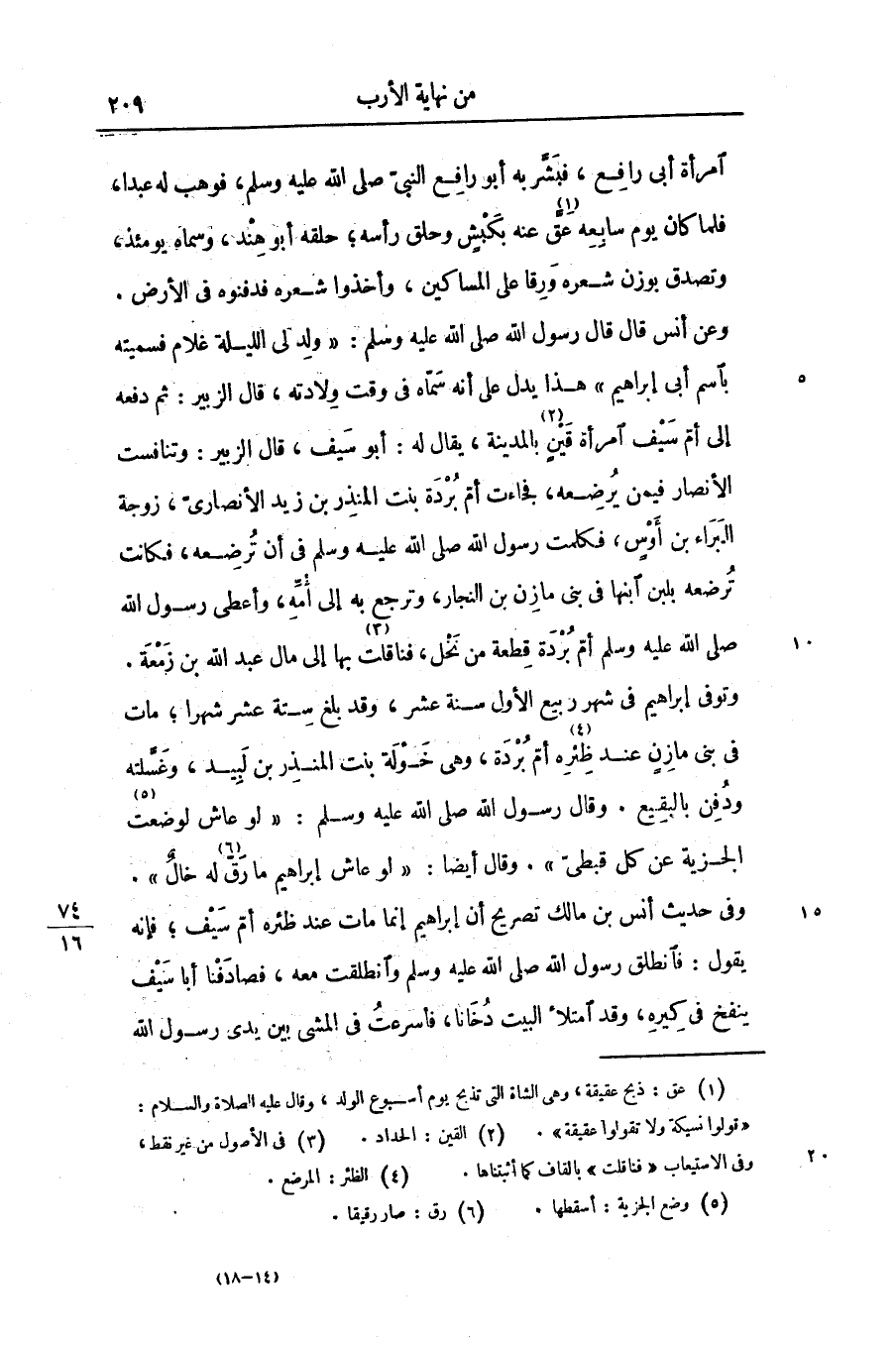 وتوفى إبراهيم فى شهر ربيع الأول سنة عشر، وقد بلغ ستة عشر شهرا؛ مات فى بنى مازن عند ظئره «4» أمّ بردة، وهى خولة بنت المنذر بن لبيد، وغسّلته ودفن بالبقيع. وقال رسول الله صلّى الله عليه وسلّم: «لو عاش لوضعت «5» الجزية عن كل قبطىّ» . وقال أيضا: «لو عاش إبراهيم ما رقّ «6» له خال» .