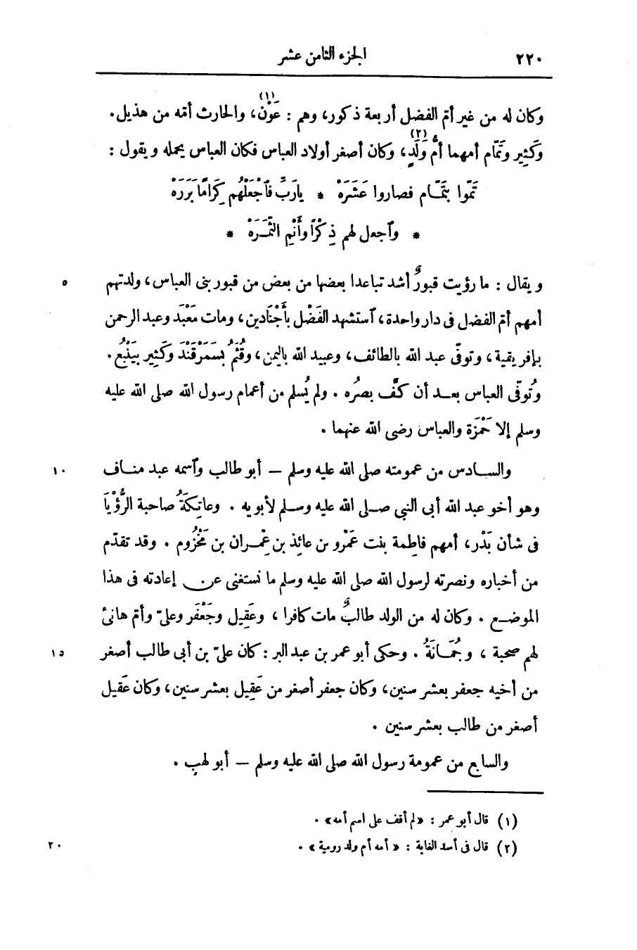 واسمه عبد مناف وهو أخو عبد الله أبى النبى صلّى الله عليه وسلّم لأبويه. وعاتكة صاحبة الرّؤيا فى شأن بدر، أمهم فاطمة بنت عمرو بن عائذ بن عمران بن مخزوم. وقد تقدّم من أخباره ونصرته لرسول الله صلّى الله عليه وسلّم ما نستغنى عن إعادته فى هذا الموضع. وكان له من الولد طالب مات كافرا، وعقيل وجعفر وعلىّ وأمّ هانىء لهم صحبة، وجمانة. وحكى أبو عمر بن عبد البر: كان علىّ بن أبى طالب أصغر من أخيه جعفر بعشر سنين، وكان جعفر أصغر من عقيل بعشر سنين، وكان عقيل أصغر من طالب بعشر سنين.