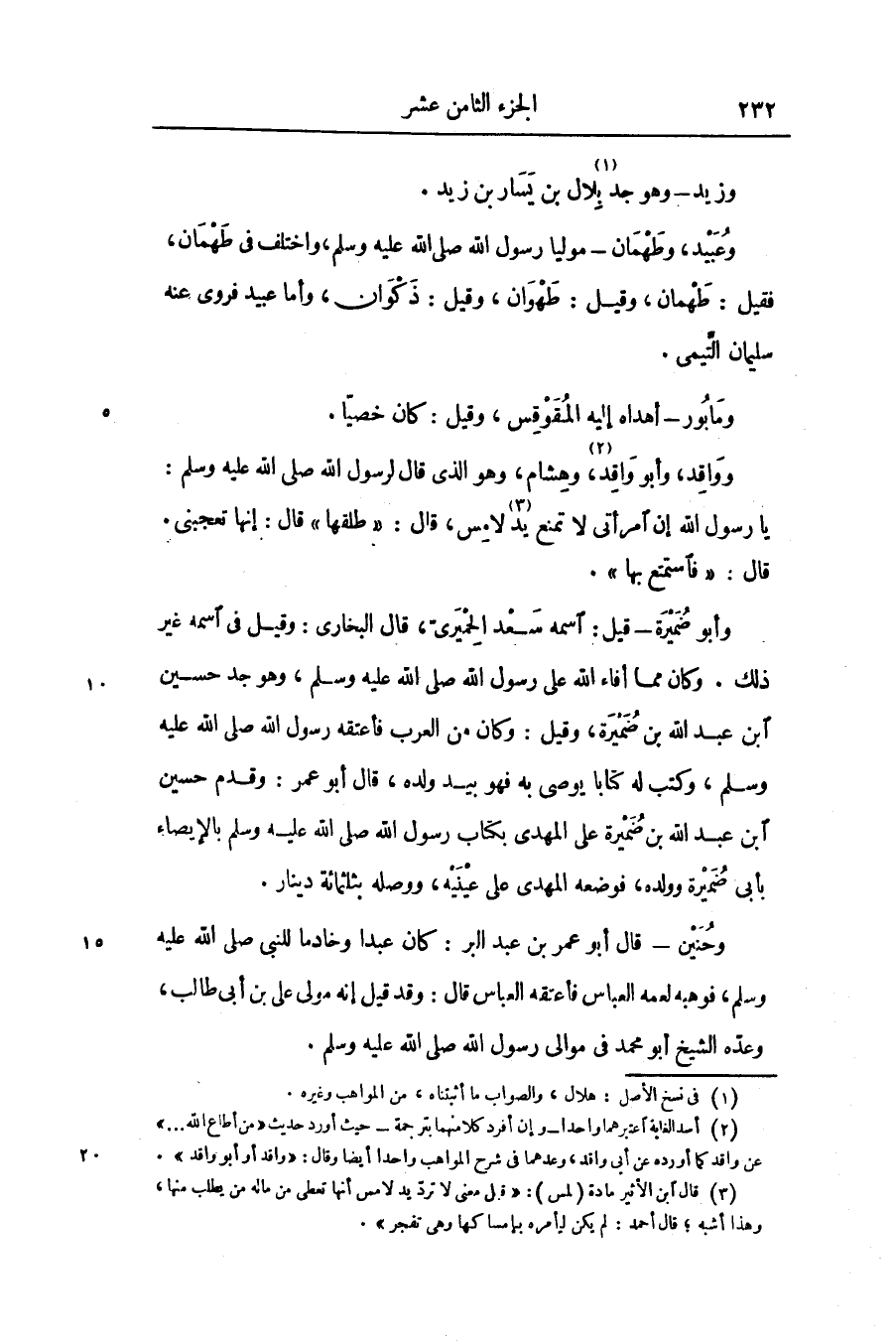 - موليا رسول الله صلّى الله عليه وسلّم، واختلف فى طهمان، فقيل: طهمان، وقيل: طهوان، وقيل: ذكوان، وأما عبيد فروى عنه سليمان التّيمى.