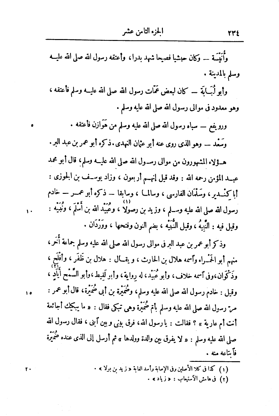 هؤلاء المشهورون من موالى رسول الله صلّى الله عليه وسلّم، قال أبو محمد عبد المؤمن رحمه الله: وقد قيل إنهم أربعون، وزاد يوسف بن الجوزى: