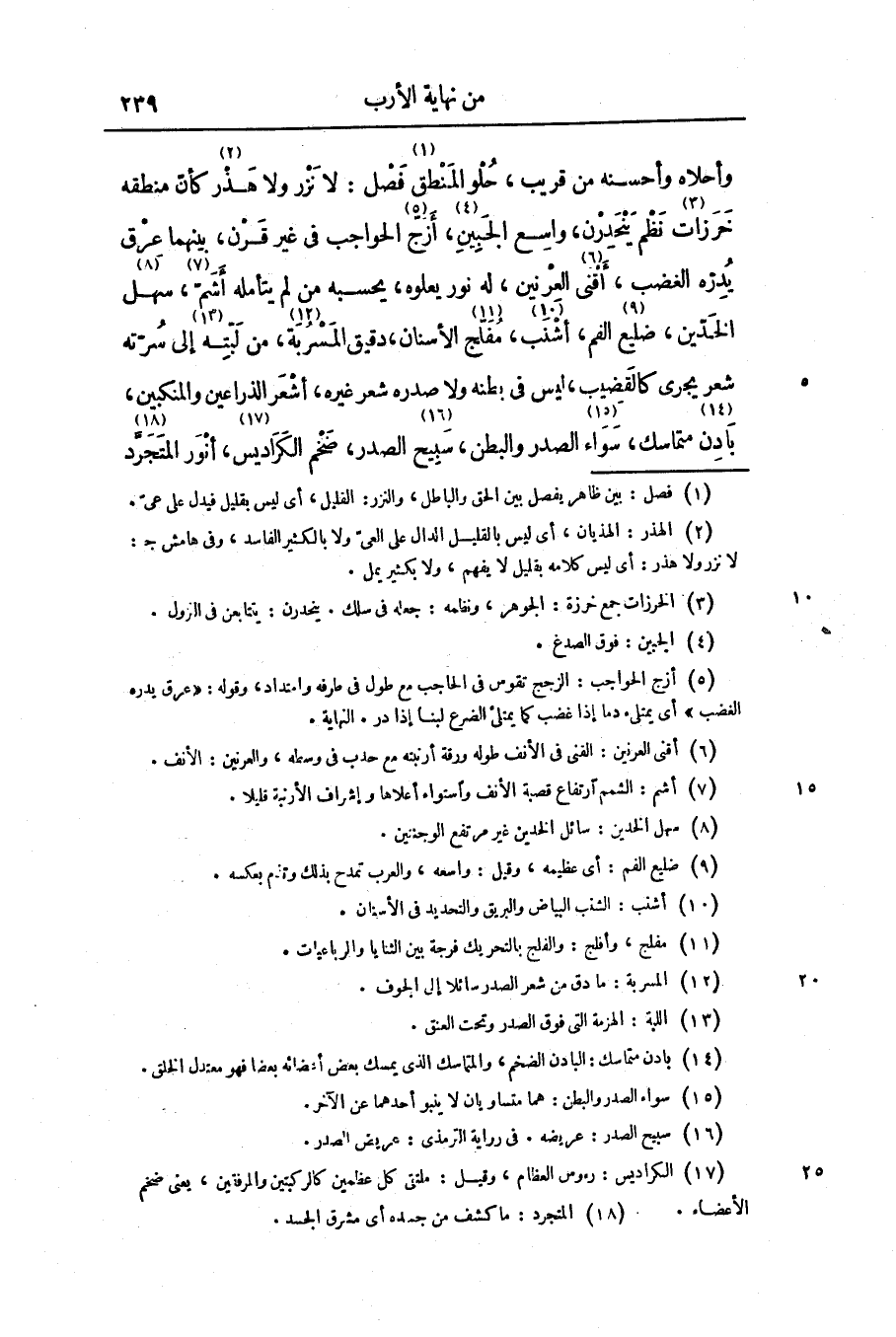 وأحلاه وأحسنه من قريب، حلو المنطق «1» فصل: لا نزر ولا هذر «2» كأنّ منطقه خرزات «3» نظم ينحدرن، واسع الجبين «4» ، أزجّ»