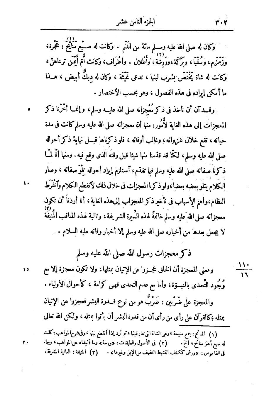 وقد آن أن نأخذ فى ذكر معجزاته صلّى الله عليه وسلّم، وإنما أخّرنا ذكر المعجزات إلى هذه الغاية لأمور: منها أنّ معجزاته صلّى الله عليه وسلّم كانت فى مدة حياته، تقع خلال غزواته، وغالب أوقاته، فلو ذكرناها قبل نهاية ذكر أحواله صلّى الله عليه وسلّم، لكنّا قد قدّمنا منها شيئا قبل وقته الذى وقع فيه. ومنها أنّا لمّا ذكرنا صفاته صلّى الله عليه وسلّم فيما تقدّم، استلزم إيراد أحواله تلو صفاته، وصار الكلام يتلو بعضه بعضا، ولو ذكرنا المعجزات فى خلال ذلك لانقطع الكلام وانفرط النظام، وأهمّ الأسباب فى تأخير ذكر المعجزات إلى هذه الغاية، أنا أردنا أن تكون معجزاته صلّى الله عليه وسلّم خاتمة لهذه السّيرة الشريفة، وتالية لهذه المناقب المنيفة «3» لا يجعل بعدها من أخباره صلّى الله عليه وسلّم إلا أخبار وفاته عليه السلام.
