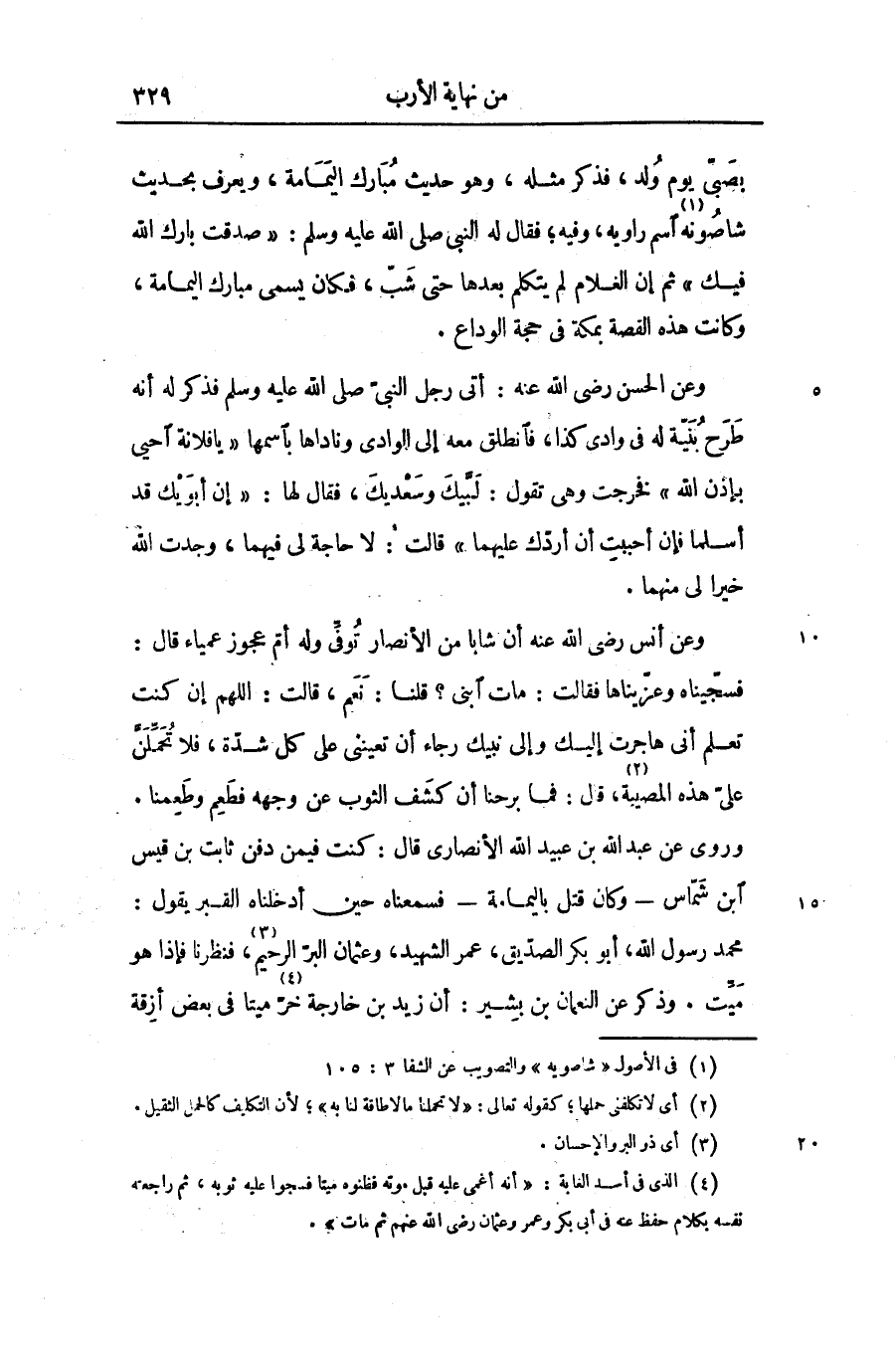 بصبىّ يوم ولد، فذكر مثله، وهو حديث مبارك اليمامة، ويعرف بحديث شاصونه «1» اسم راويه، وفيه؛ فقال له النبى صلّى الله عليه وسلّم: «صدقت بارك الله فيك» ثم إن الغلام لم يتكلم بعدها حتى شبّ، فكان يسمى مبارك اليمامة، وكانت هذه القصة بمكة فى حجة الوداع.