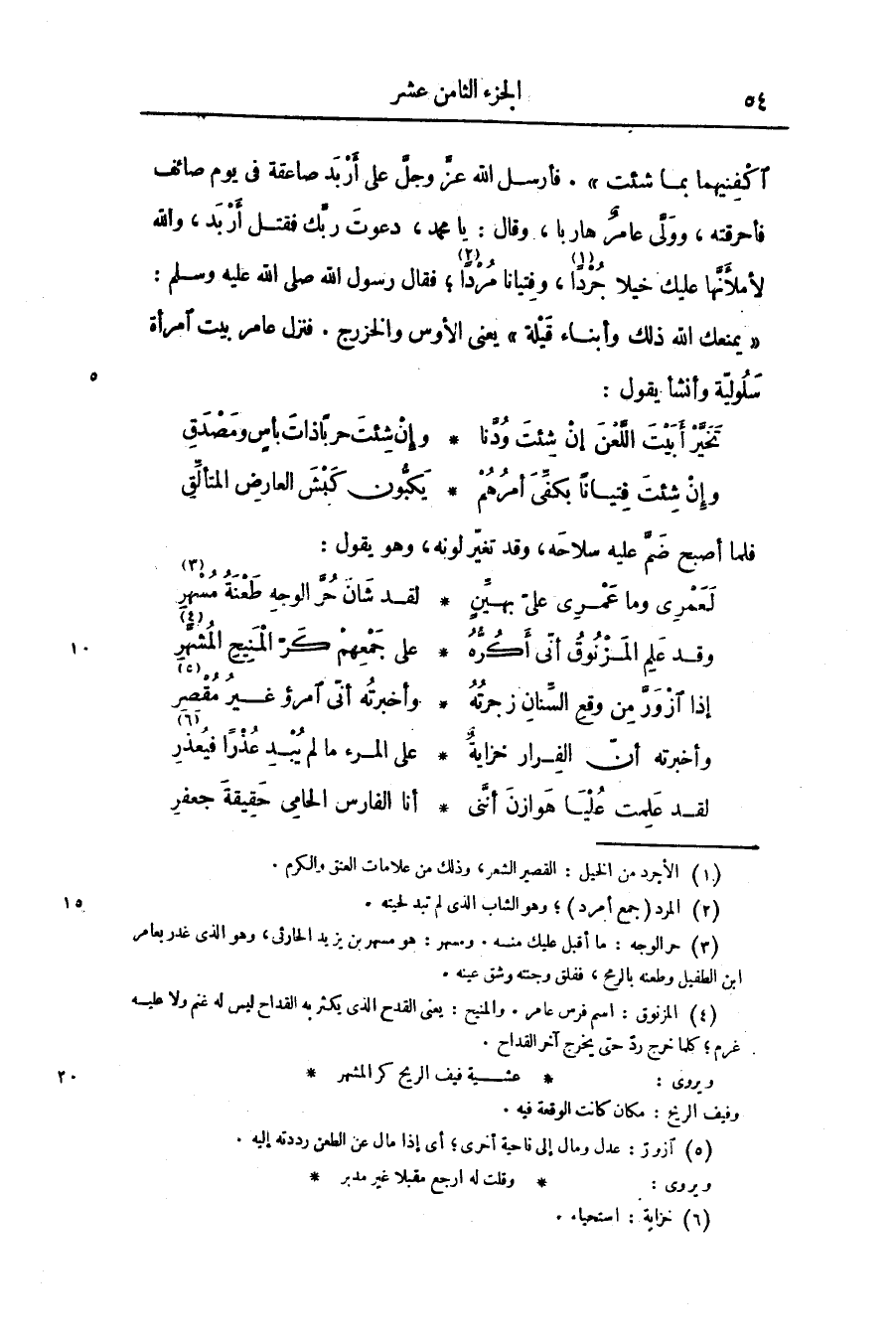 «يمنعك الله ذلك وأبناء قيلة» يعنى الأوس والخزرج. فنزل عامر بيت امرأة سلوليّة وأنشأ يقول: