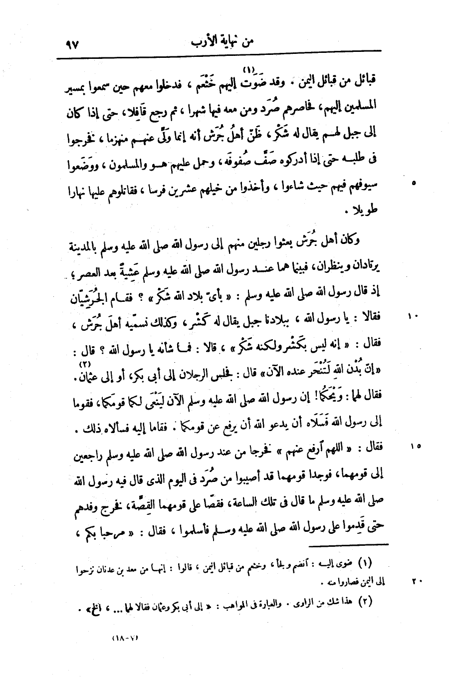 قبائل من قبائل اليمن. وقد ضوت «1» إليهم خثعم، فدخلوا معهم حين سمعوا بمسير المسلمين إليهم، فحاصرهم صرد ومن معه فيها شهرا، ثم رجع قافلا، حتى إذا كان إلى جبل لهم يقال له شكر، ظنّ أهل جرش أنه إنما ولّى عنهم منهزما، فخرجوا فى طلبه حتى إذا أدركوه صفّ صفوفه، وحمل عليهم هو والمسلمون، ووضعوا سيوفهم فيهم حيث شاءوا، وأخذوا من خيلهم عشرين فرسا، فقاتلوهم عليها نهارا طويلا.